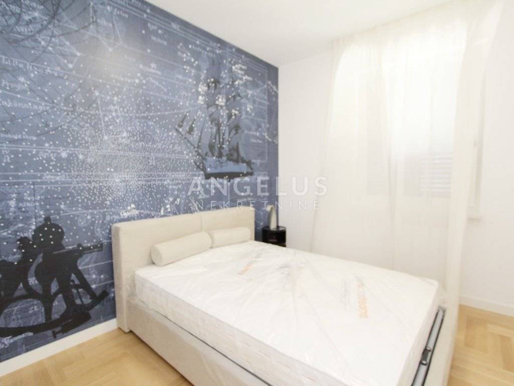 It is located on the 8th floor, and consists of a living room with kitchen and dining room, loggia, two bedrooms, a hallway and two bathrooms.  It is fully furnished, air-conditioned, underfloor heating in the bathrooms. The apartment has all household appliances and is additionally equipped with air conditioning in all rooms, underfloor heating in the bathrooms, burglar and fire alarms.  it also includes tha garage.
