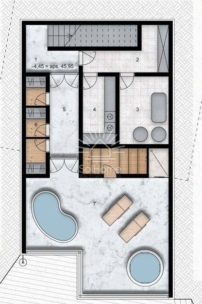 This prestigious villa offers the perfect blend of luxury, privacy, and modern architecture. Nestled in a peaceful, natural setting just 700 m from the beach and 1,000 m from the town center.