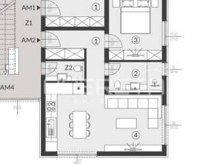We"re presenting modern apartment AM2 in a new building near Medulin, with a total area of 64 m², located just 200 meters from the sea and marina. Ideally positioned on the ground floor of a smaller building with only 8 apartments, on the edge of the construction zone, it offers an intimate and quiet environment.