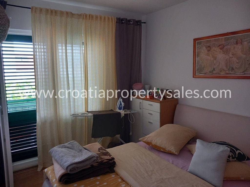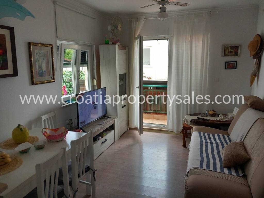 Apartment with a yard, summer kitchen and fireplace.Near the sea and the center, with a sea view.The living space consists of a living room with a kitchen, one bedroom, a bathroom and a covered terrace.The apartment also has a 68 m2 yard that is horticulturally decorated and where there is a covered summer kitchen with a fireplace. The outdoor space is ideal for spending the day.The apartment also has a storage room of 6 m2 and a parking space of 14 m2.