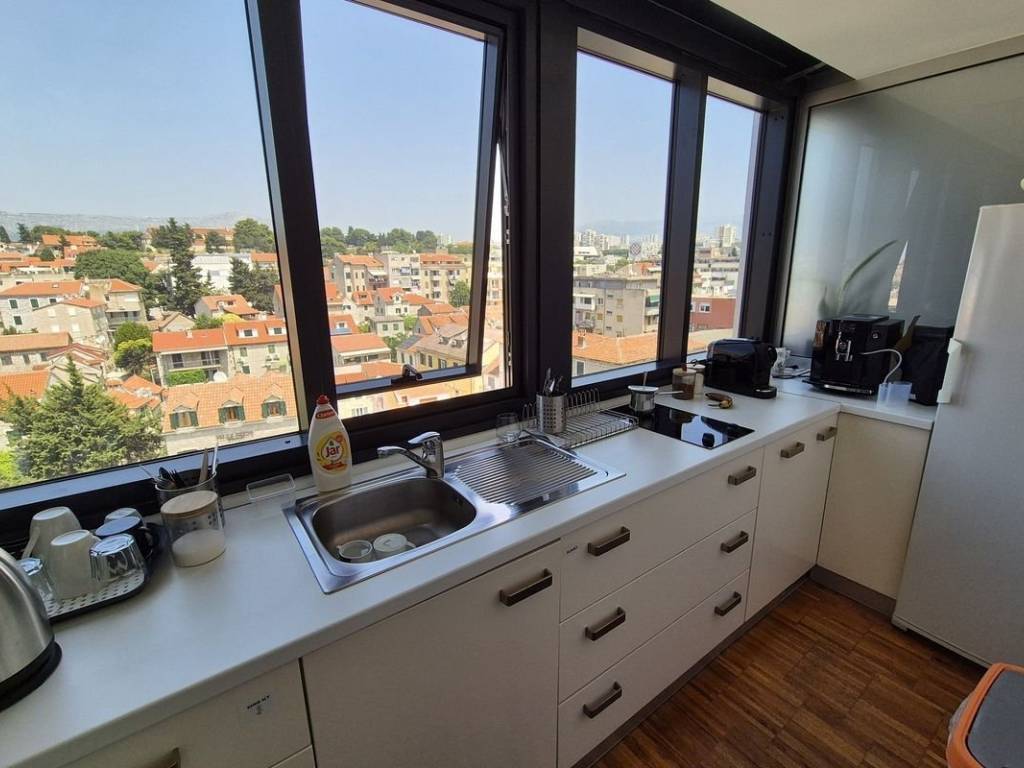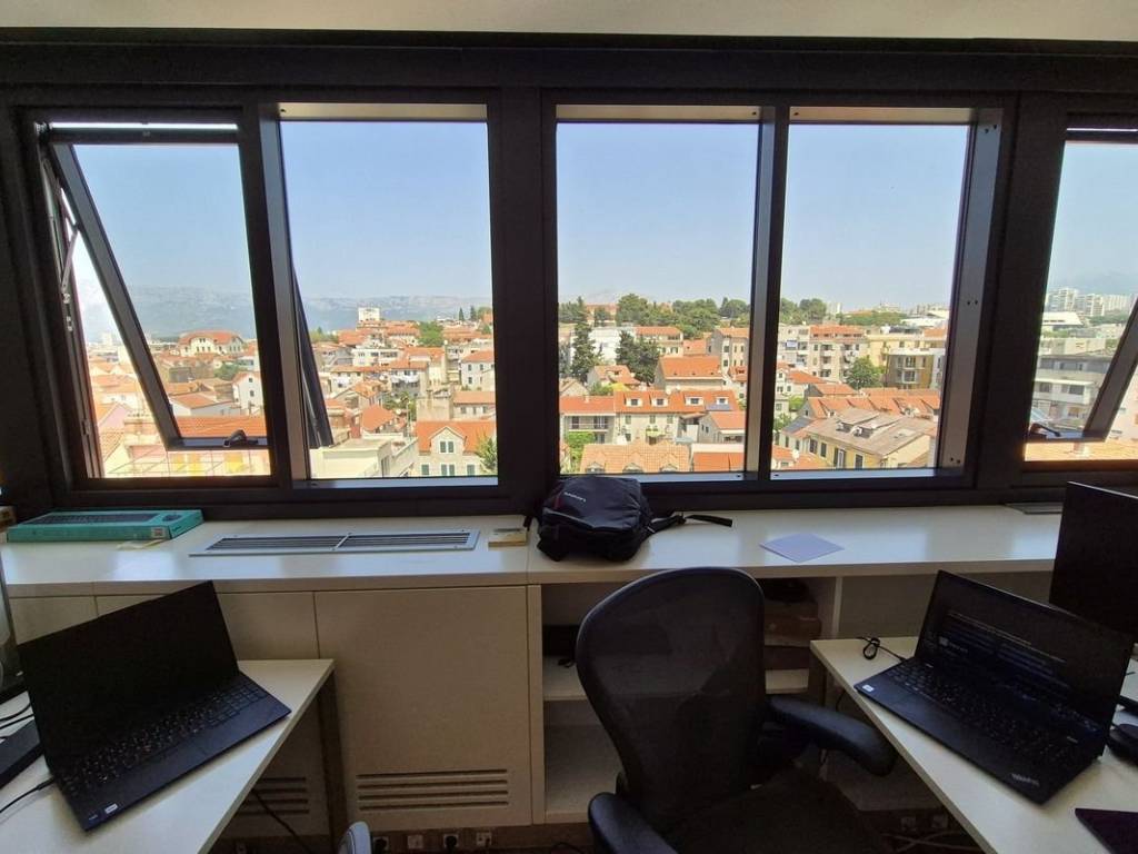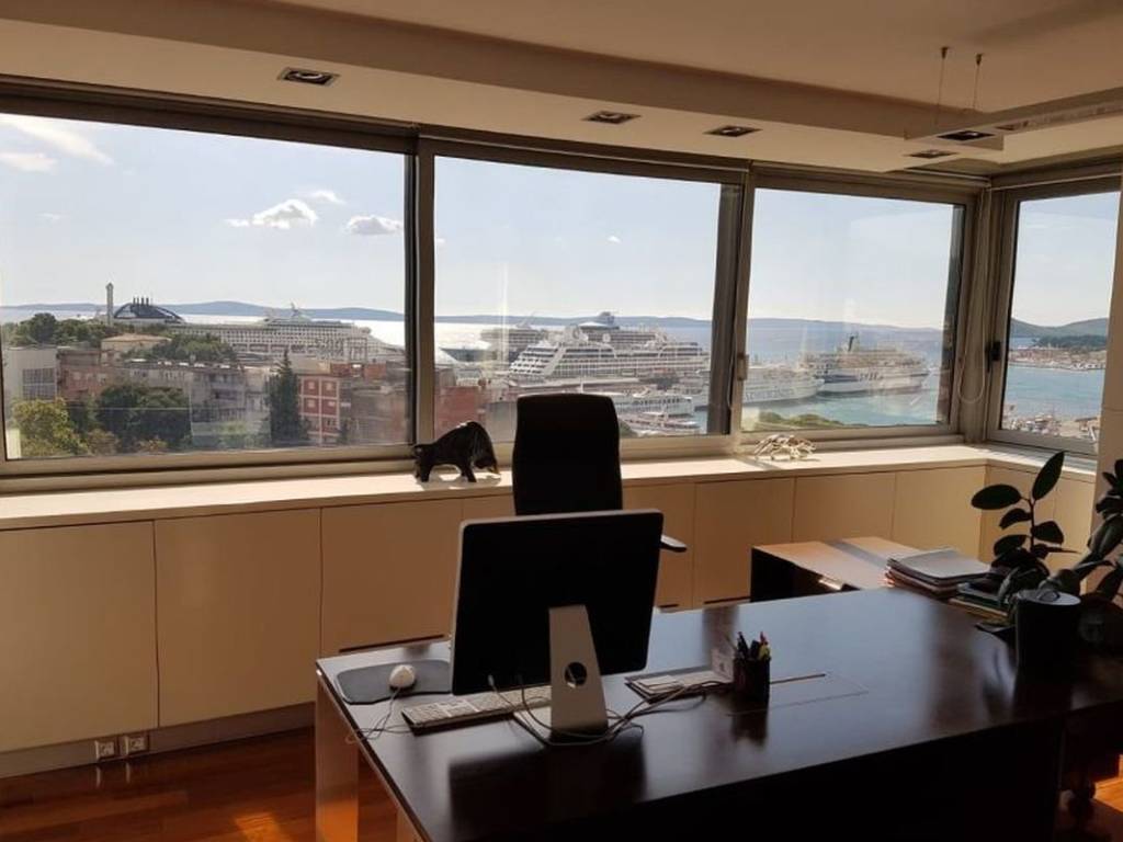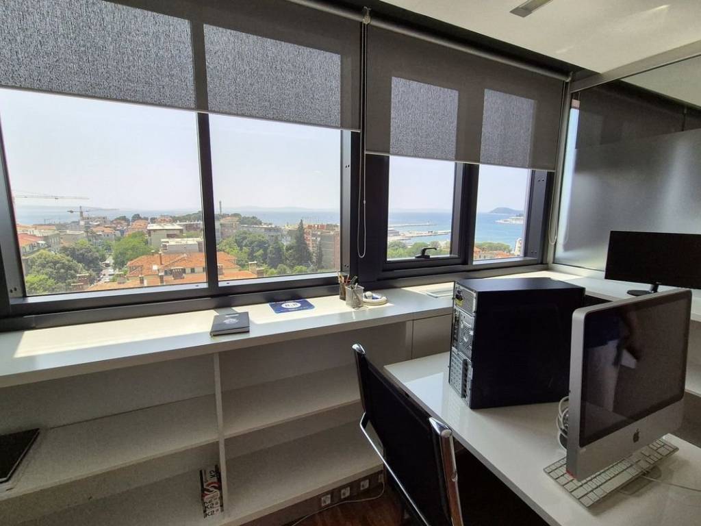 Attractive and modern office space, for rent, located in a business building with an elevator near the city center. The space covers a total of 192 m2, and consists of 6 connected office rooms, three bathrooms and a kitchenette. The space is oriented north-south. Since it is located on the upper floors of the building, each room offers an excellent view of the sea and the city. The space is fully furnished and equipped, and is rented as such. Parking is not located within the building, but a large public parking lot is located nearby. Given the level of decoration and the very elegant position in which it is located, the space represents an excellent opportunity for office work for a larger number of employees, whose potential is easy to recognize at first glance.