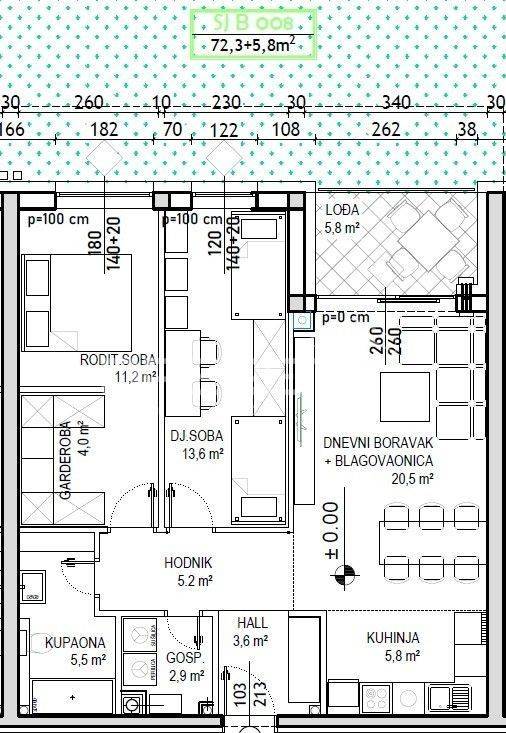 Prodaje se stan površine 72,3 m2 s lođom površine 5,8 m2 u prizemlju niskoenergetske stambeno – poslovne zgrade na odličnoj lokaciji. Zgrada se sastoji od podruma, visokog prizemlja, prvog, drugog i trećeg kata te sadrži ukupno 74 stambene jedinice i 7 poslovnih prostora. Završetak gradnje predviđen je krajem 2025./početak 2026. Energetski razred je A+. Moguć je odabir podnih obloga (keramika, parket ili laminat) te odabir unutarnje stolarije. Uz stan moguća je kupovina i vanjskog parkirnog mjesta po cijeni od 8.000,00 EUR, garažnog mjesta bez spremišta po cijeni od 14.000,00 EUR, garažnog mjesta sa spremištem do 17,4 m2 po cijeni od 17.500,00 EUR, garažnog mjesta sa spremištem do 19,4 m2 po cijeni od 19.500,00 EUR ili garažnog mjesta sa spremištem do 20,6 m2 po cijeni od 22.500,00 EUR.