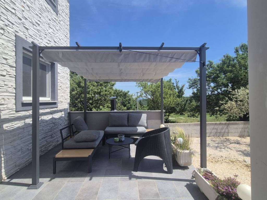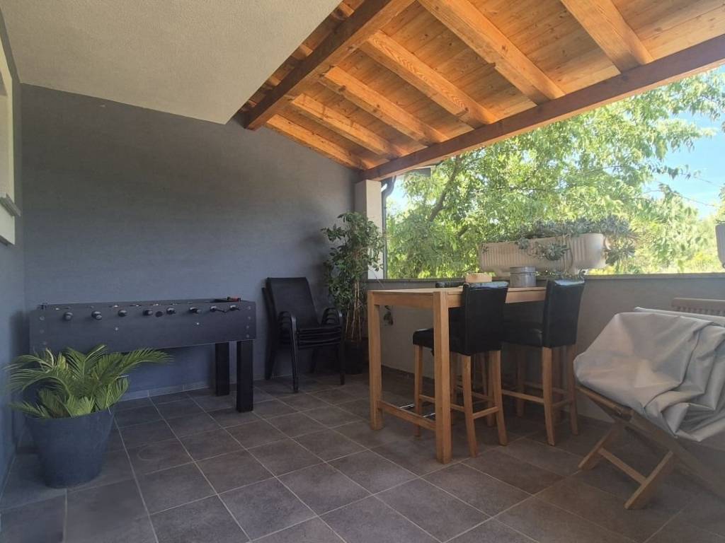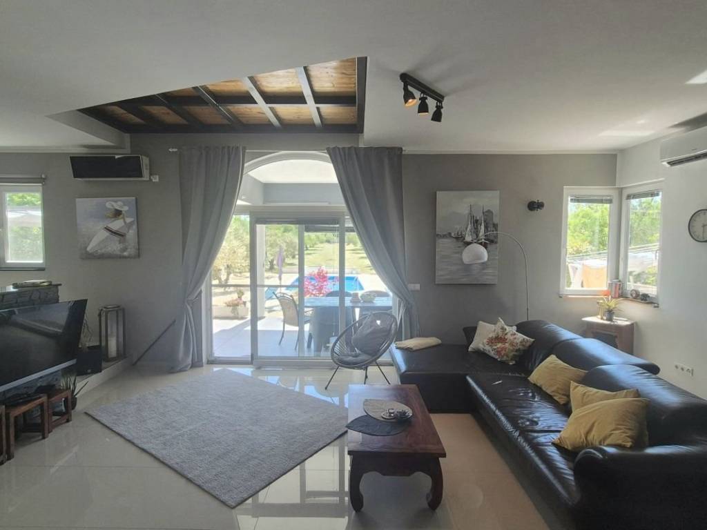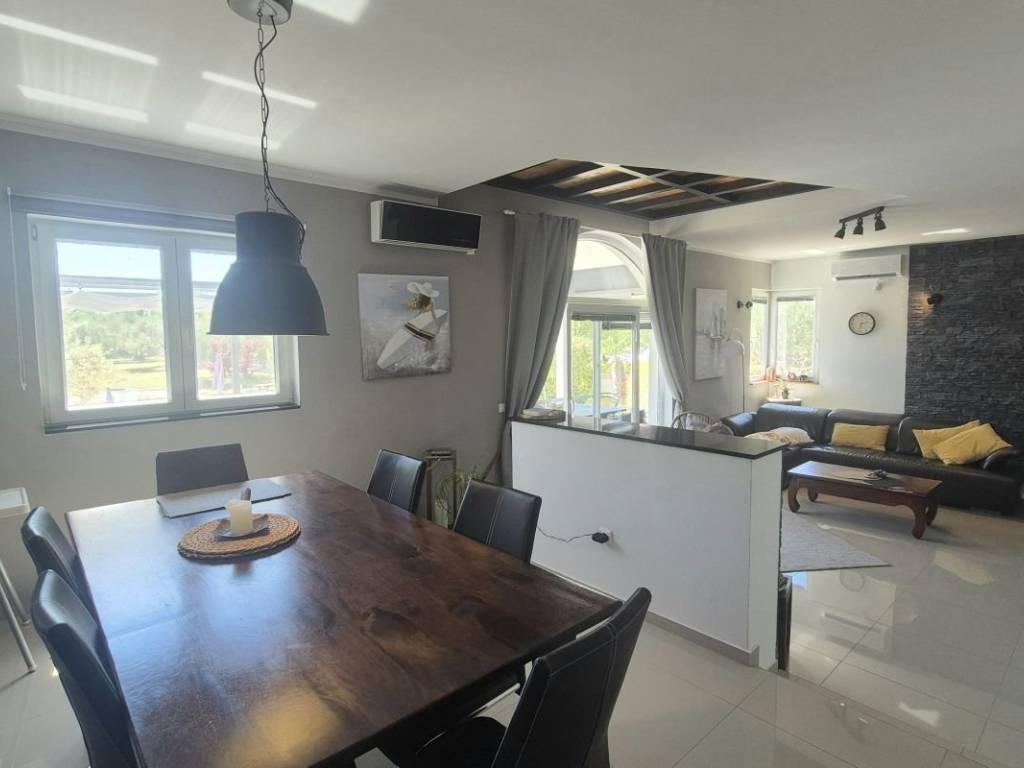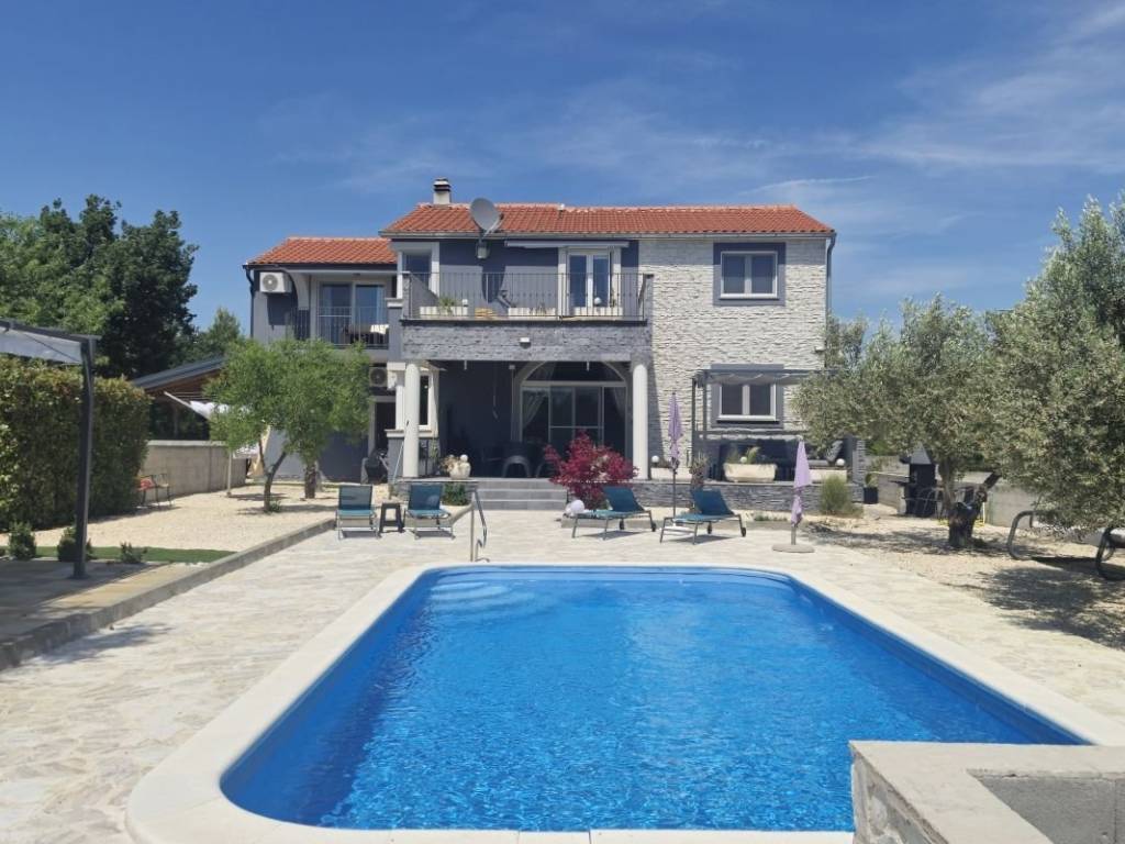 A house with a pool is for sale in a quiet location near Skradin. The house has three levels: basement, ground floor and first floor, with a total gross area of 282.4 square meters. It is located on a plot of 1250 square meters. On the ground floor there is a living room, kitchen, dining area and one bathroom. The first floor includes four bedrooms, two bathrooms, a smaller living room, a terrace and a balcony. The property offers a garage, several parking spaces, a swimming pool, an outdoor shower and a bocce court. The house is air conditioned with two units on the ground floor, one unit in each bedroom upstairs, and an additional unit in the garage. There is also an option to purchase an olive grove of 1500 square meters. The location is just a few minutes’ drive from Skradin and Krka National Park. River beaches are nearby, and the nearest sea beach can be reached in approximately 35 minutes. The house is currently used as a holiday rental and has been successfully operating in tourism for several years.