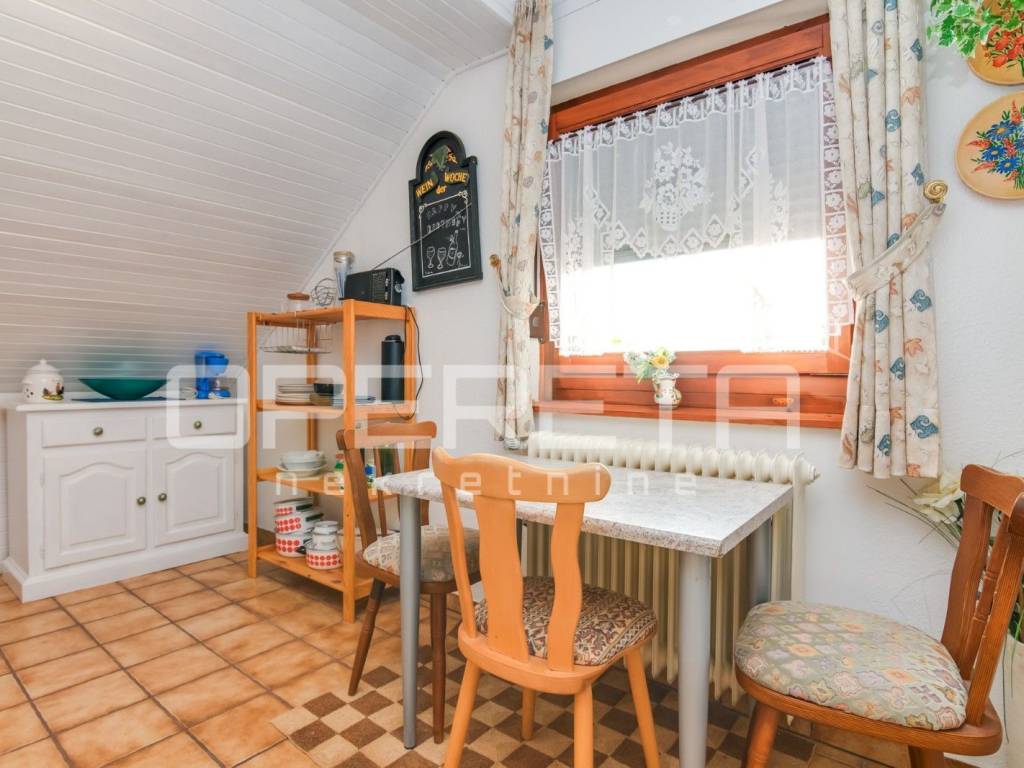 Potkrovlje: kuhinja, dnevni boravak, spavaća soba, kupatilo, balkon, pristup tavanu sklopivim stepenicama – može služiti kao zasebna jedinica