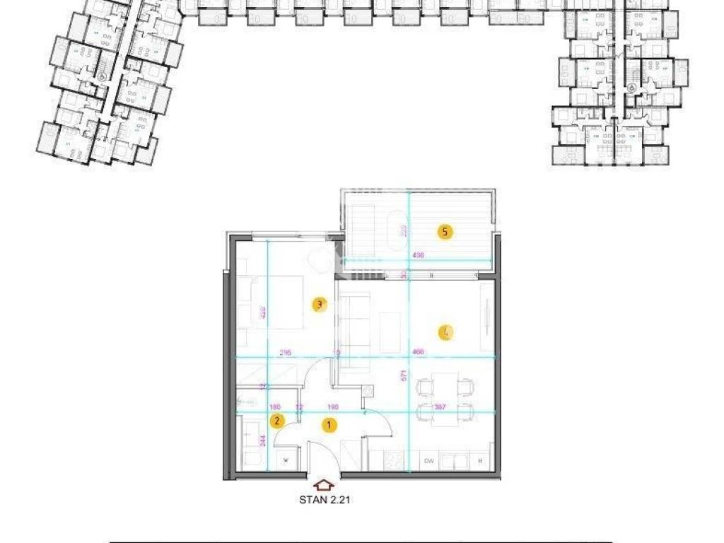 Apartment with covered parking space in a new building in UmagAn apartment with covered parking space in a new building in Umag is for sale. The net usable area of the apartment is 52.80 m2. It consists of a living room and kitchen, bedroom, bathroom and loggia. It has a storage room of 2.60 m2 and one outdoor covered parking space.The residential building is entirely designed from reinforced concrete monolithic construction, interfloor panels. The partition walls inside the apartments are made of double-thick plasterboard linings with additional thermal and sound insulation. The facade lining is in the ETICS system with 10 cm thick thermal insulation. The external facade openings are closed with high-quality multi-chamber PVC anthracite joinery of the latest generation. The bedrooms have electric roller shutters. All apartments are equipped with high-quality multisplit heating and cooling systems whose operating characteristics ensure maximum comfort and economy.Each apartment is equipped with its own water and electricity meter. Preparation of sanitary water is done by means of a low consumption electric water heater. All apartments are provided with telephone, antenna, TV and Internet connection, and a video intercom installation is installed for each apartment. The rooms and the living room have parquet flooring, while the hallways and hallways have tiles. The highest quality materials and built-in equipment make every apartment extremely comfortable for living as well as for renting for tourist purposes.The completion of construction is planned for July 2025. The apartment is located 800 m from the sea and the center of Umag.www.leones-realestate.hr