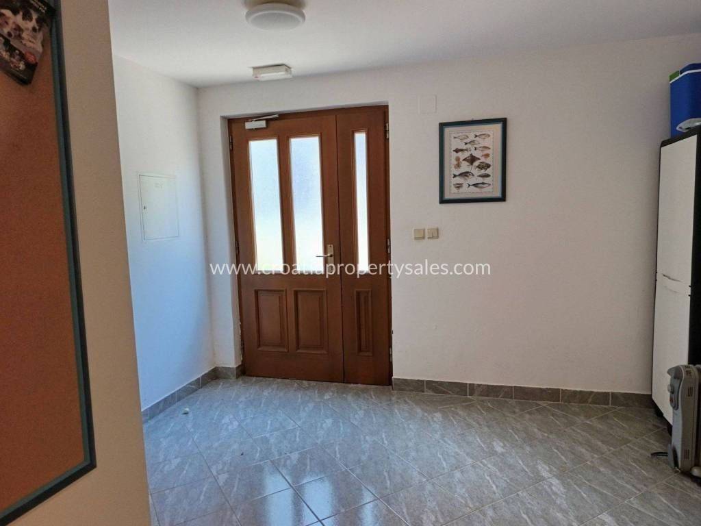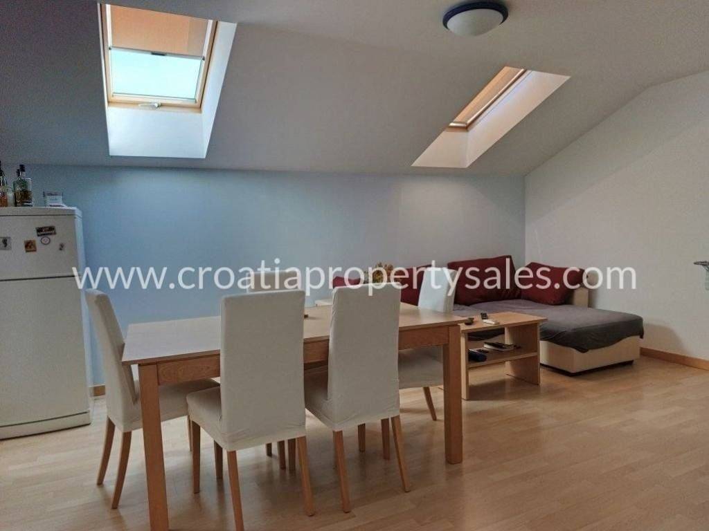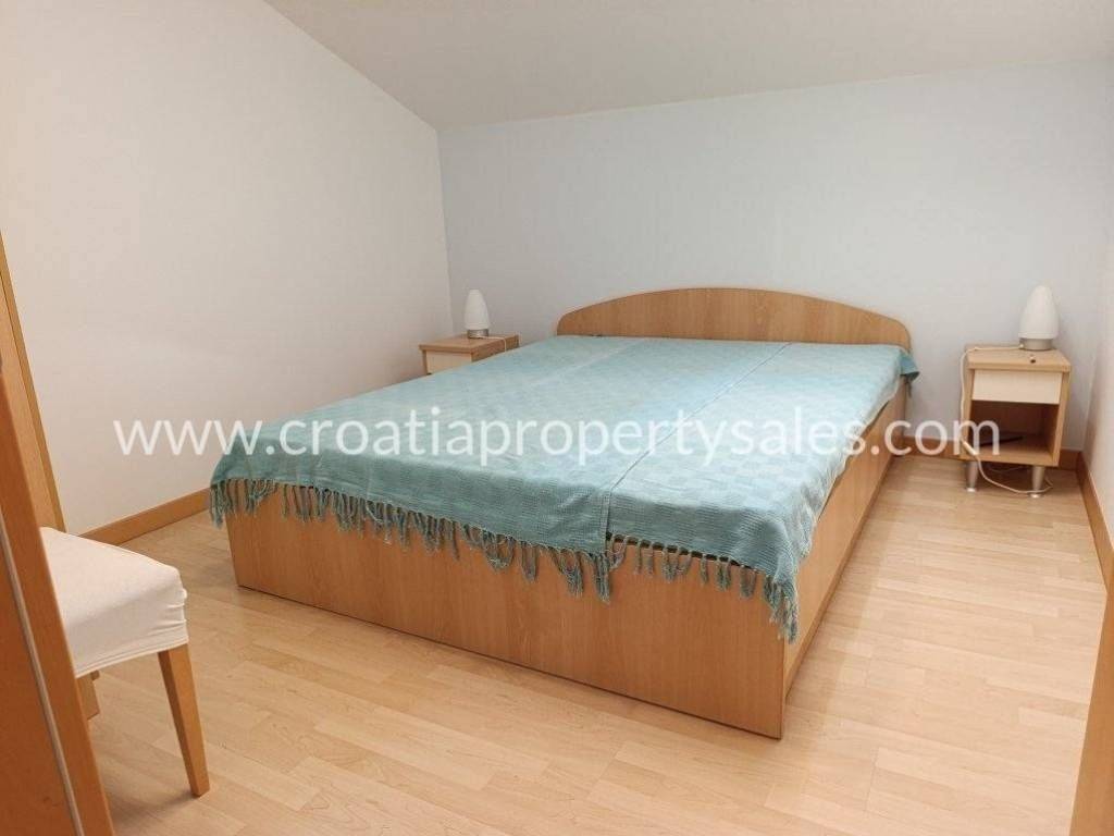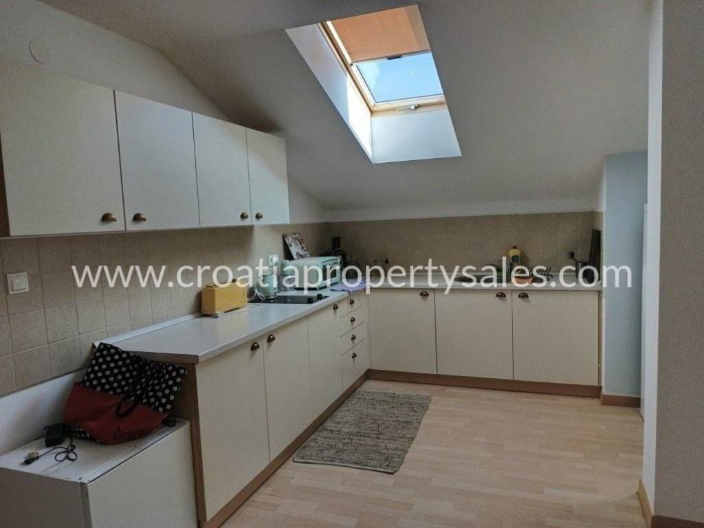 A move-in apartment in an excellent location on the 3rd floor near the sea.An apartment for sale with a separate entrance on the 3rd floor in the attic of a residential building with a total net usable area of 77.66 m2. The apartment is an open space type consisting of a living room with a dining room, kitchen, two bedrooms, hallway, storage room and two bathrooms. The apartment is in excellent condition in a quiet location.The sea and the city center are only a few meters away, where there are restaurants, cafes, shops...The tenants have a shared barbecue behind the building, as well as a possible parking space, there is no private parking.The building is built to high quality, the attic is superbly insulated - the apartment is pleasant in summer and not hot, it has security doors, air conditioning, electric heating, connection to city water supply and sewage.