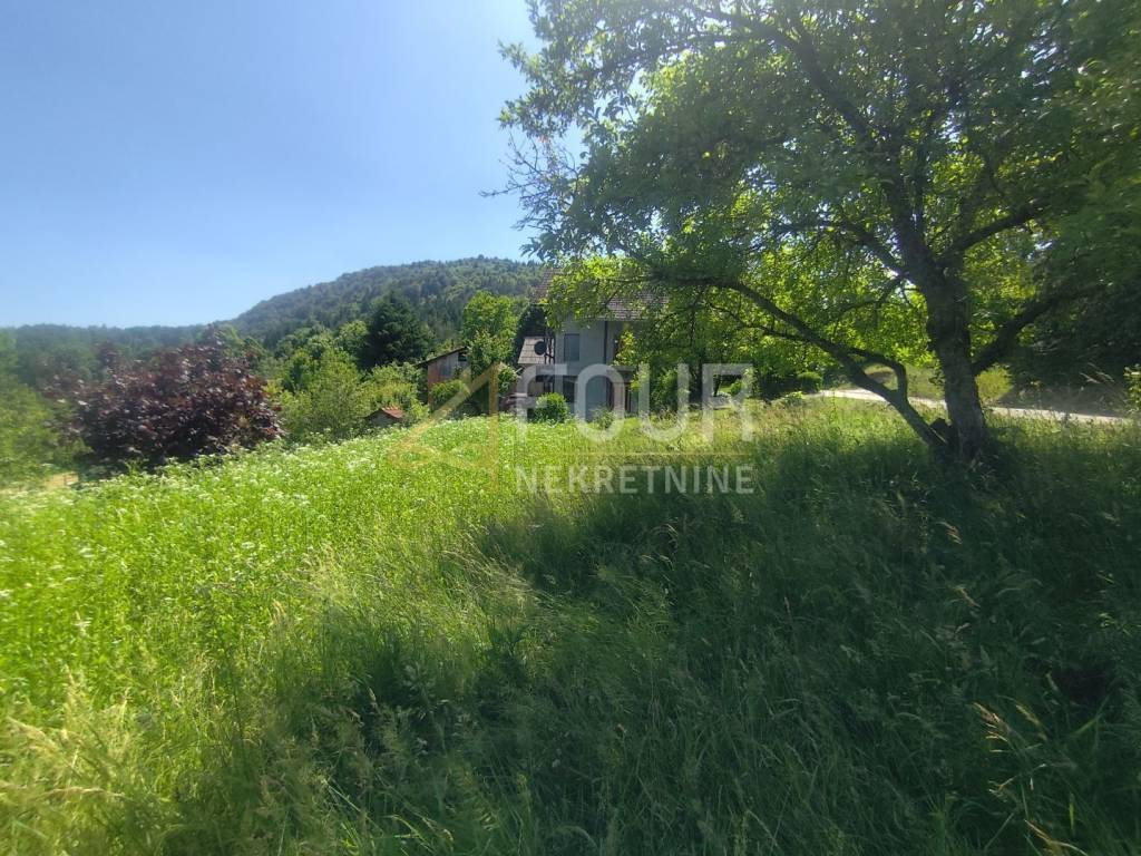 Building land for sale with an area of 791m2, located along the road in a populated area in Gorski Kotar, with houses nearby.
