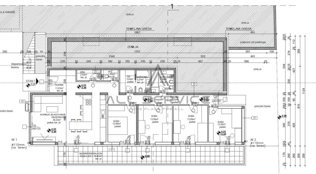 The building will be constructed with vertical and horizontal cerclages, reinforced concrete elements whose main role is to stiffen the masonry walls and enable even distribution of the load that is transferred from the mezzanine structure to the masonry walls. Partition walls will be made of block bricks. The mezzanine structure will be made with reinforced concrete slabs. A 15 cm thick thermal insulation will be made on the façade of the building.