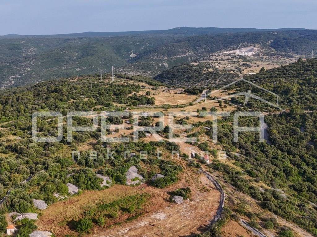 An agricultural plot with a total area of 29,032 m² consists of six interconnected parcels, located on the sunny northern side of the island in Škrip. The land is covered with native shrubs and low forest groves, while traditional dry-stone walls divide the terrain and give it an authentic rural character. An access road to the property is secured.