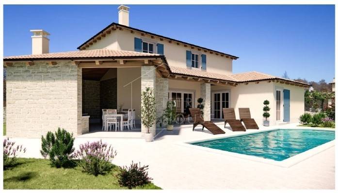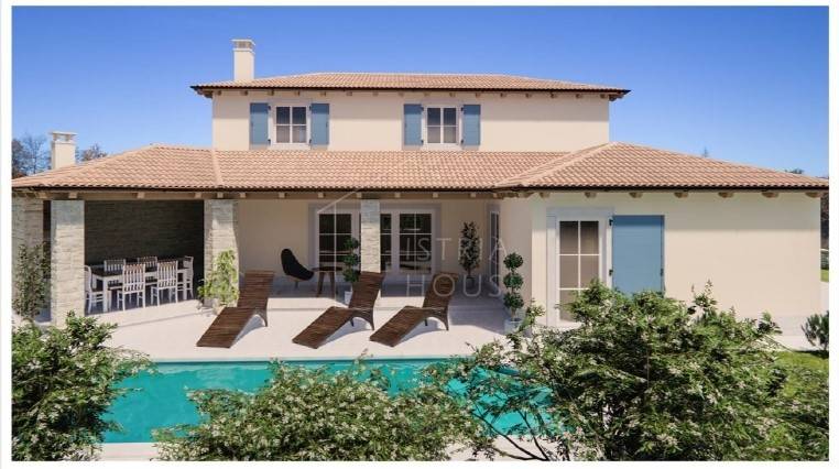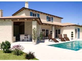 We are selling a modern house under construction in the wider area of Rovinj, a city known for its history and tradition, and especially for tourism, in the central part of Istria. The house is one of 9 villas that are being built and together they will form a closed complex of Mediterranean villas, each with its own pool and all oriented towards the south so that they have daylight throughout the day.