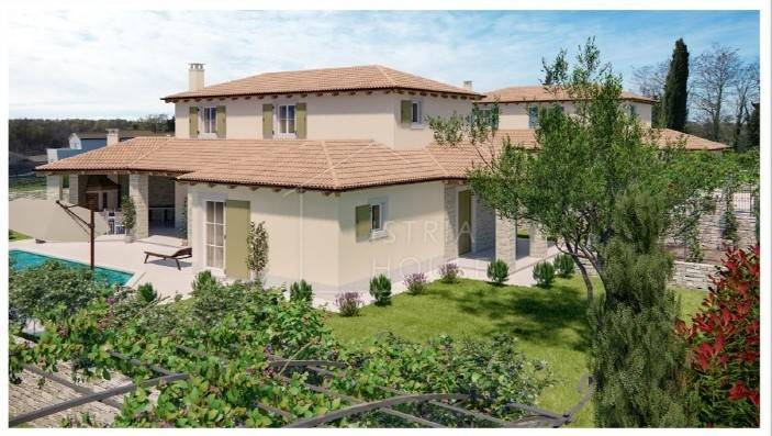 In the vicinity of Žminj, there are 9 villas for sale that make up a closed complex with a common imposing entrance. Each of the 9 villas is free-standing with its own yard and pool and garden. They are oriented to the south and thus receive the maximum amount of daylight and sun. They were built in a typical Istrian style, where the emphasis was placed on materials that were used for construction once upon a time.