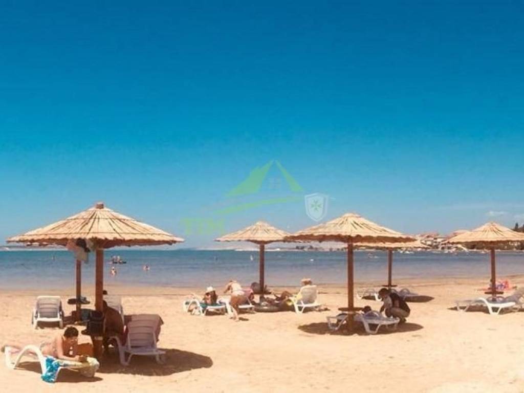 Građevinsko zemljište površine 700 m2; smješteno na odličnoj lokaciji; udaljeno svega 250 metara od mora i prekrasne pješčane plaže.Parcela lijepog oblika; širine 17 metara a dužina iznosi 38 metara.Ishodovana dozvola za gradnju vile sa bazenom; plaćeni su vodni u komunalni doprinosi tako da je moguće odmah započeti sa gradnjom.Prema projektu vila se sastoji od prizemlja i kata; ukupne površine 250 m2; od toga je zatvoreni dio 180 m2; a 70 m2 je otvoreni prostor.Prizemlje se sastoji od spavaće sobe, kupaonice, WC-a, te otvorenog prostora gdje se nalaze kuhinja sa blagovaonicom te dnevnim boravkom, prostor za rekreaciju te velike otvorene terase.Na katu se nalaze 3x spavaće sobe, od kojih svaka ima svoju kupaonicu, praonice te terase.Ispred vile je planirana izgradnja bazena.Kompletna infrastruktura uz zemljište.