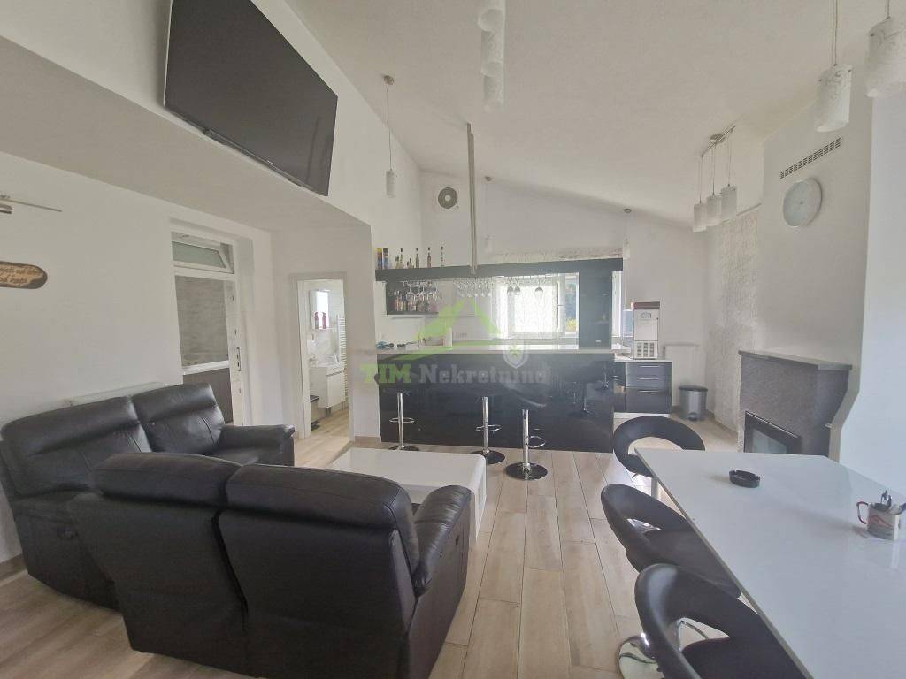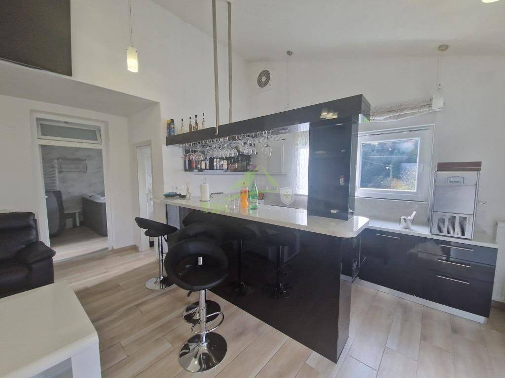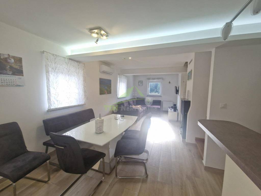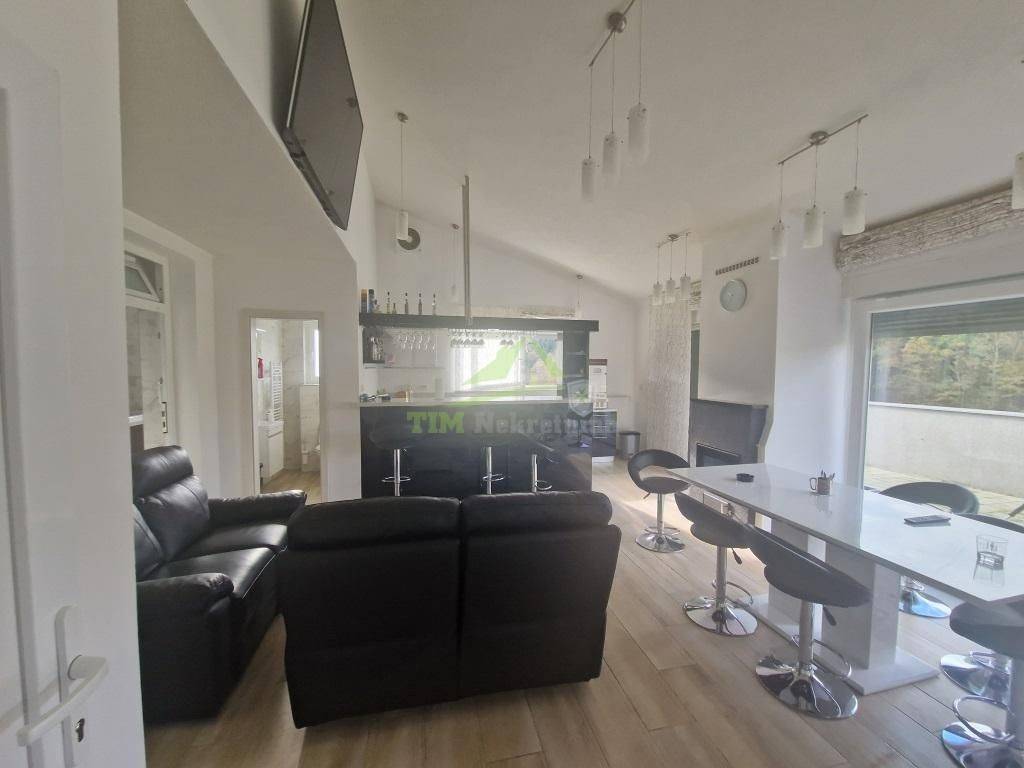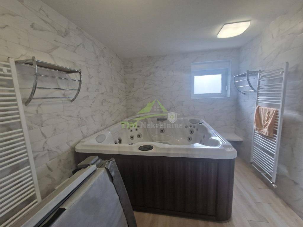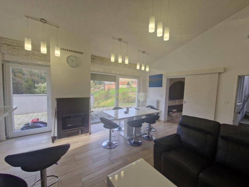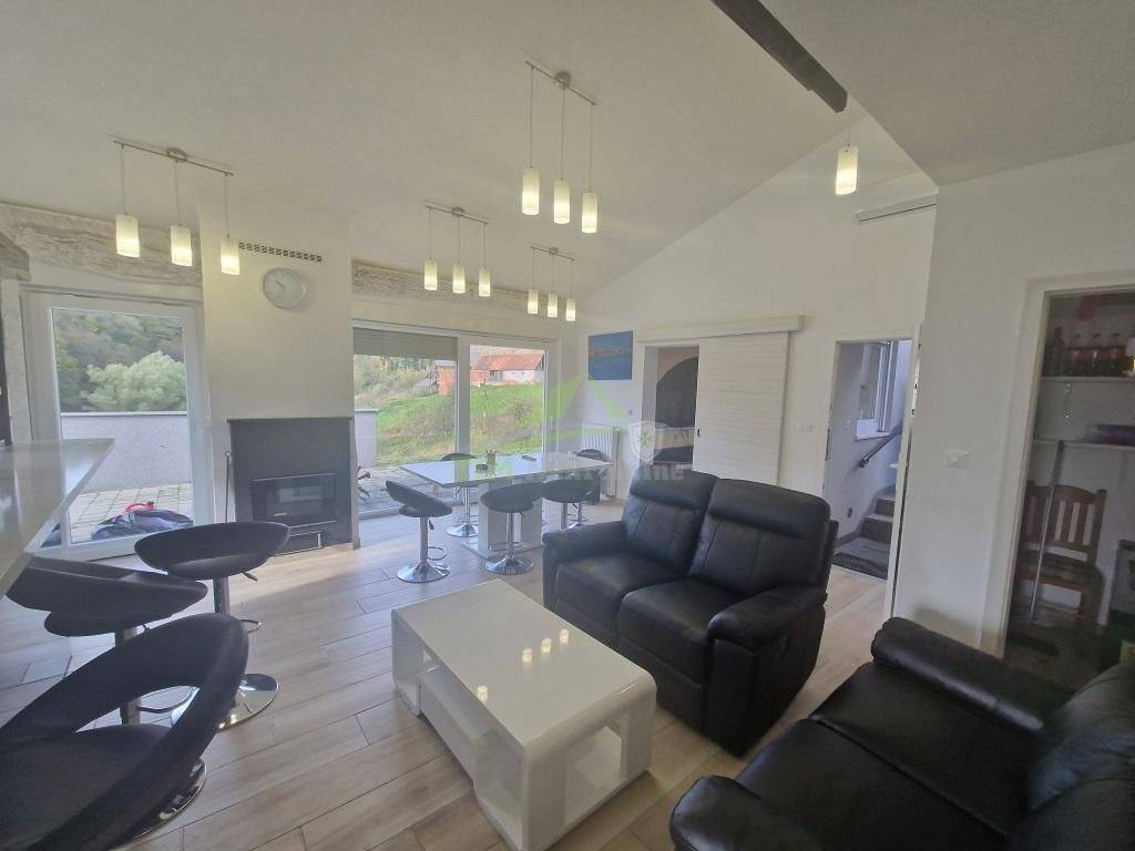 Prekrasna kuća za odmor ili trajno stanovanje, u malom mirnom mjestu.Posjeduje sve što je potrebno za odmor i opuštanje od jacuzzija do unutarnjeg ugrađenog roštilja te velikim moderno opremljenim prostorom za druženje.Lijepo uređenim ambijentom, koji sa ostakljene terase pruža prekrasan pogled na idilični pejzaž te netaknutu prirodu.Kuća je razvedena na tri etaže; podrum, prizemlje te potkrovlje; tlocrtne površine 104 m2; na zemljištu ukupne površine 654 m2.U samoj gradnji korišteni su najkvalitetniji materijali; ugrađena su najmodernija te najkvalitetnija rješenja poput dizalice topline za sanitarnu vodu; kamina za grijanje na svakoj etaži; podnog grijanja; klima uređaja; vrhunske PVC stolarije.Izvrsna nekretnina i kao investicija za turistički najam.Uredna sva dokumentacija.