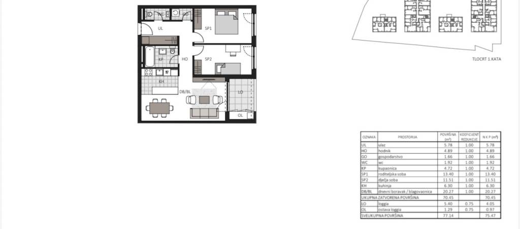 Zagreb, Lanište prekrasan trosoban stan 70m2 sa loggiom 5m2 u NOVOGRADNJI 2024Na prodaju je moderan trosoban stan ukupne korisne površine 70,14 m² smješten na prvom katu novije zgrade na izvrsnoj lokaciji u Zagrebu. Stan se nalazi u kvalitetnoj zgradi s liftom, mirnom okruženju i odličnom prometnom povezanošću.Stan se sastoji od:ulaznog prostora i hodnika,ostave,wc-a,kupaonice,roditeljske spavaće sobe,dječje sobe,kuhinje,dnevnog boravka s blagovaonicom,lođe površine 5,39 m² idealne za jutarnju kavu,vanjskog spremišta površine 1,29 m².Stan je svijetao, odlično orijentiran, s funkcionalnim rasporedom koji omogućuje ugodan obiteljski život. Namještaj po mjeri visoke kvalitete u svim prostorijama, što uključuje ugradbene ormare sa kliznim vratima i modernu kuhinju talijanskog dizajna. Opremljen je uređajima visokog energetskog razreda renomiranih svjetskih proizvođača. Dizalica topline omogućuje podno grijanje u svim prostorijama, a sustavom za grijanje i hlađenje moguće je upravljati i bežično preko WiFi-ja uz mobilnu aplikaciju SmartThings.Dodatno:Stan uključuje dva parkirališna garažna mjesta u podrumu zgrade:jedno površine 12,78 m²,drugo površine 14,25 m² s izravnim pristupom u lift, odmah pored ulaza.Lokacija:Mirno i sigurno okruženjeBrza povezanost s glavnim prometnicamaU blizini javnog prijevoza, trgovina, škole, vrtića i ostalih sadržaja potrebnih za svakodnevni životOstale značajke:Etažno vlasništvoLift u zgradiMogućnost useljenja po dogovoruIdealno za obitelji ili kao investicija za najamOva nekretnina pruža savršenu kombinaciju kvalitetnog života u gradu uz privatnost i mir, a dodatna vrijednost su dva garažna mjesta uključena u cijenu.Za više informacija ili dogovor oko razgledavanja, slobodno nas kontaktirajte.