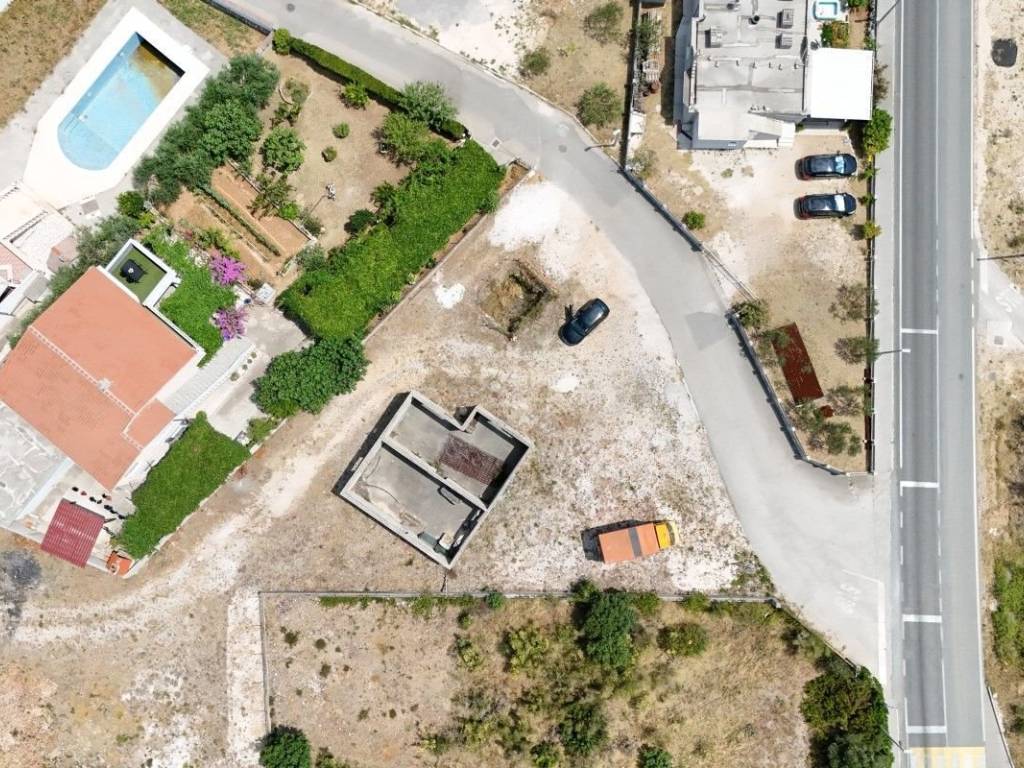 Building land of 811 m² in the village of Plano, triangular in shape, perfect for commercial or residential development. It is situated next to the main road, offering excellent visibility, easy access, and a sea view. On the land, there is a building under construction, which was started but not completed (99m2). The foundation slab (10 x 10 m) and walls have been built, but construction was halted in 1984. There is also an excavated pit measuring 4 x 4 m. Infrastructure is available nearby, and ownership is clear.