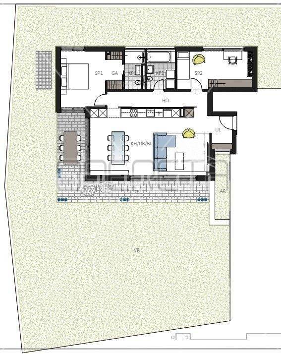 Luxurious equipment and high-quality first-class materials are the leading factors that influence the overall quality of the project. Anti-seismic reinforced concrete structure, underfloor heating with heat pump with smart probes, separate cooling system with wifi controllers in each room of the home, burglar-proof and fire-proof doors, aluminum joinery with thermal coefficients for A certificate, thermal and sound insulation with optimal protection from external influences and meeting modern energy efficiency standards, extra-high light openings with interior room doors 240 cm high, luxurious first-class tiles and sanitary ware from renowned Italian names and manufacturers. All criteria of durability, durability, safety, comfort and aesthetics are met.