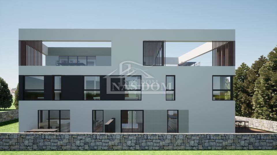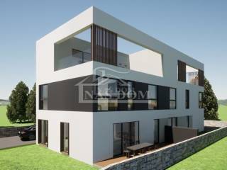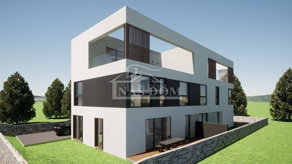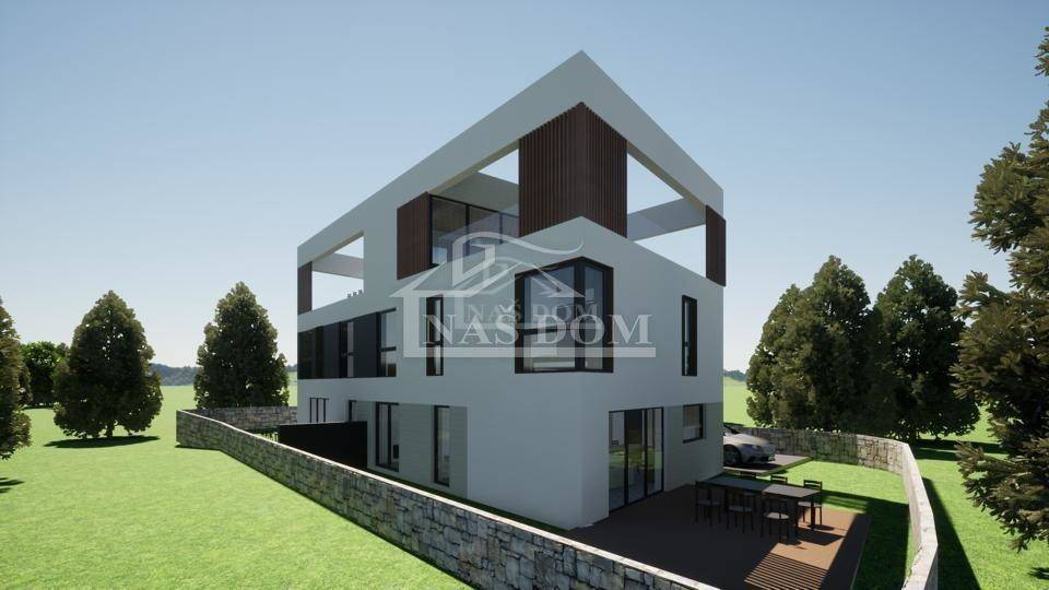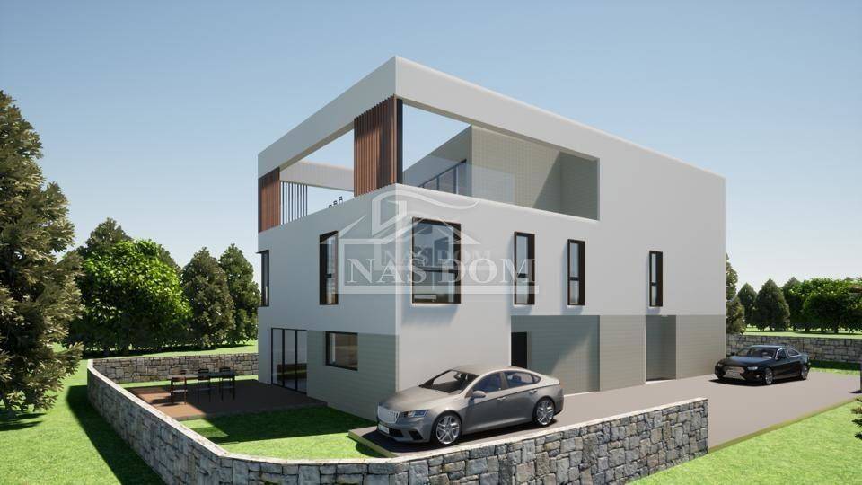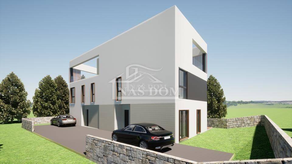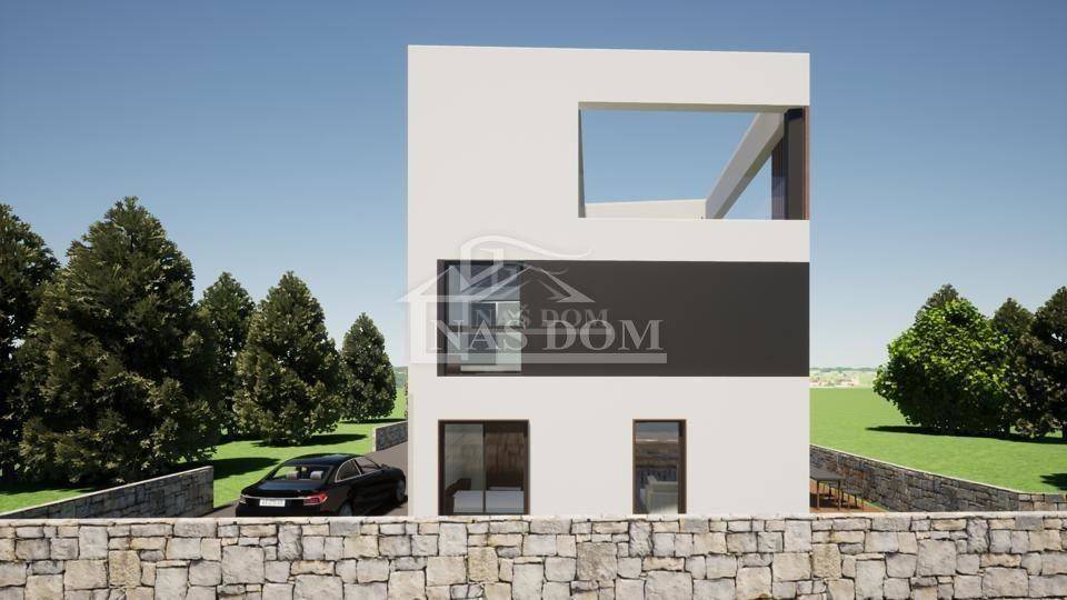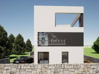 Vodice - *NOVOGRADNJA* prodaje se Kuća dvojni objekt koja se gradi se na zemljištu ukupne veličine 475m2.. Kuća modernog izgleda se gradi kvalitetnim materijalima pema posljednjem standardu gradnje i biti će opremljena : stiropor fasada, PVC stolarija, električni podizači roleta, kvalitetne podne obloge,moderne kupoanske sanitarije, klima uređaj u spavaćim sobama i dnevnom boravku...