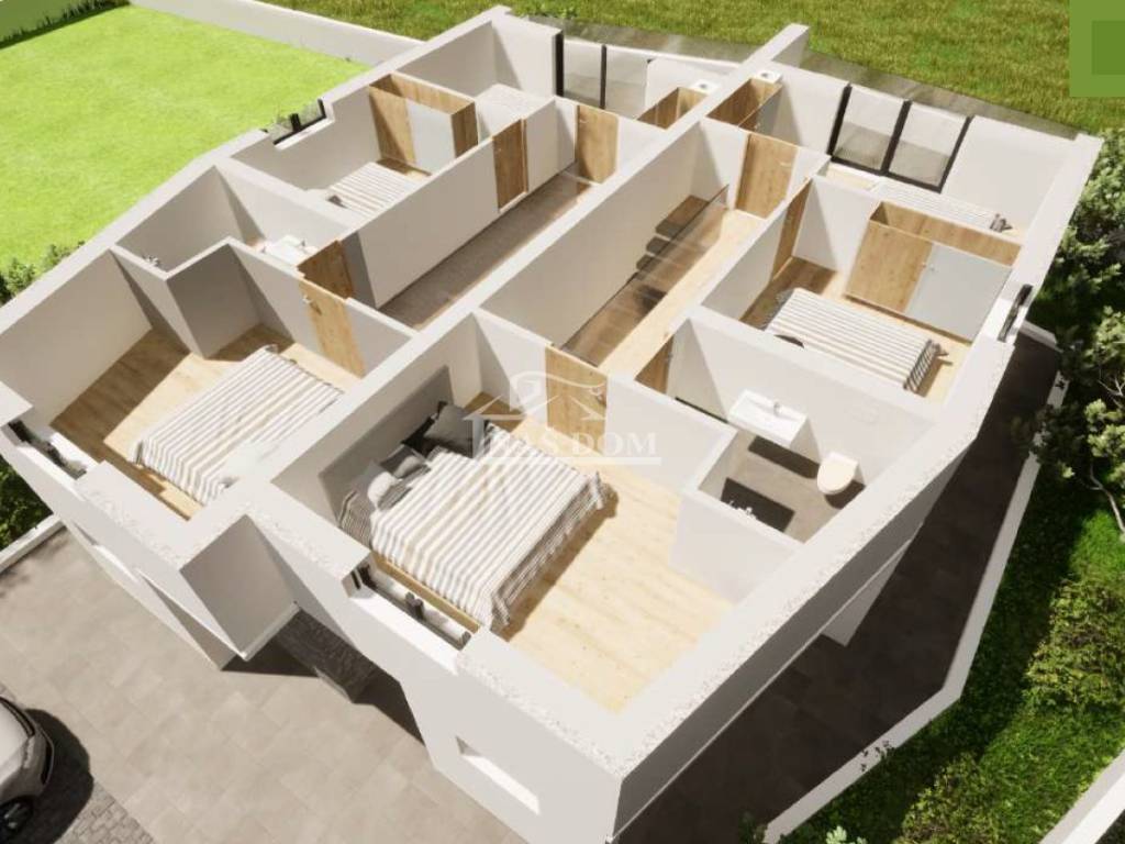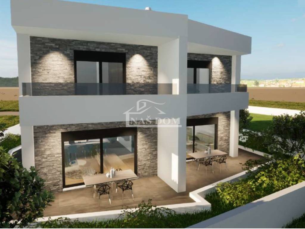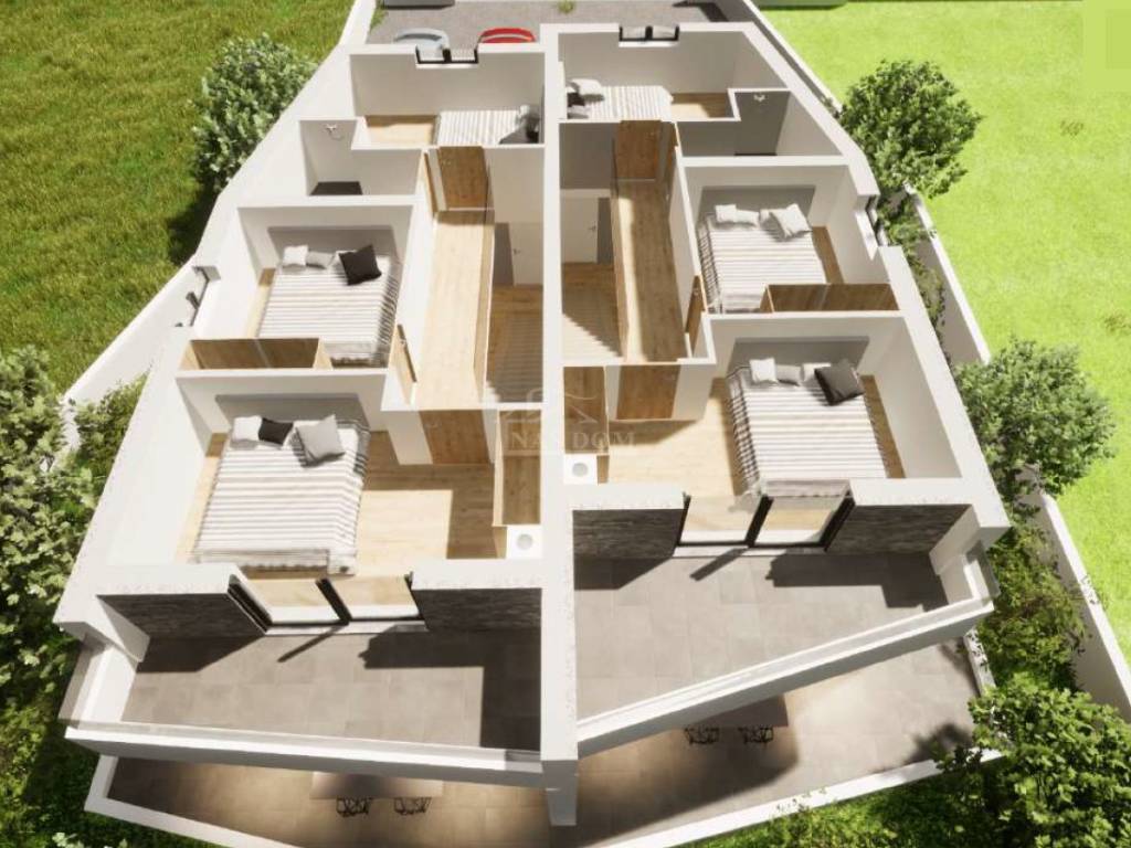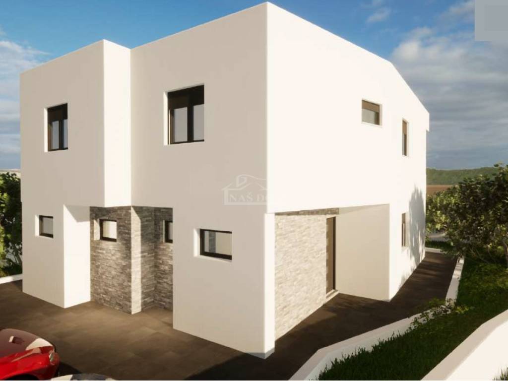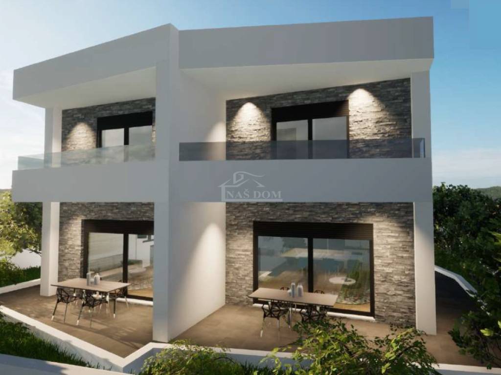 Vodice - **NEW CONSTRUCTION** for sale S1 and S2 semi-detached house in a quiet location. The house with a modern appearance is currently being built with high-quality materials and will be equipped according to the latest construction standards: styrofoam facade, anthracite-colored PVC joinery, shutters with electric lifters, air conditioning in the bedrooms and living room, underfloor heating in the bathrooms and living room, modern bathroom sanitary ware, ceramic tiles, laminate flooring in the rooms, preparation for heat pump, cantilevered wooden-clad stairs,...