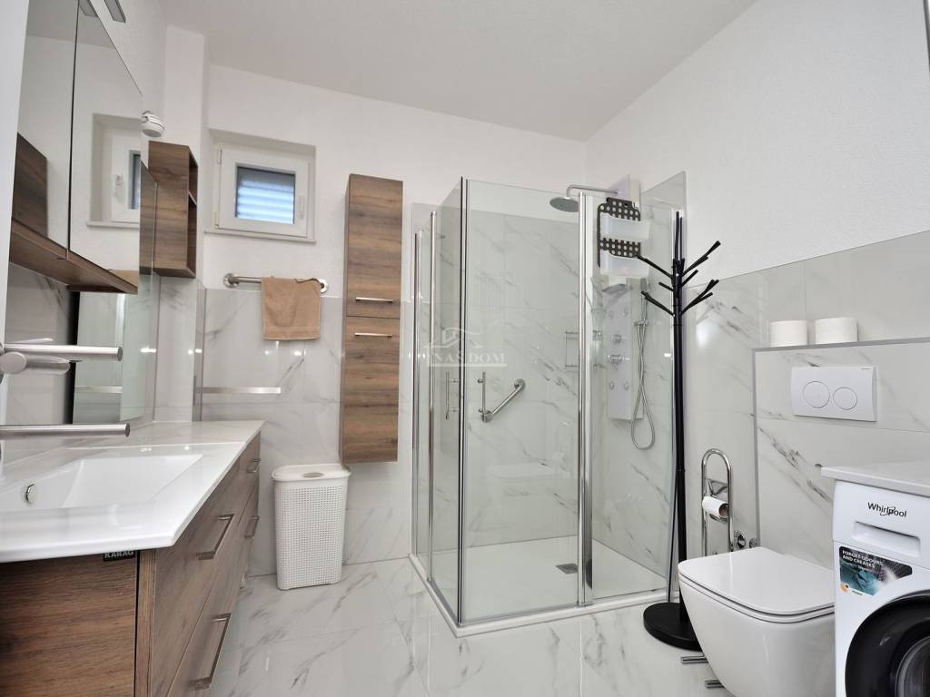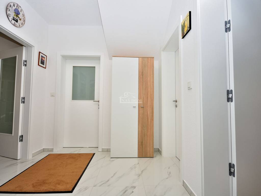 Kuća neto stambene površine 244,85m2 sastoji se od dvije etaže: prizemlje + kat .Prizemlje neto površine 126,30m2 se sastoji od ulaz, hodnik, predsoblje s garderobom, , dvije spavaće sobe, dvije kupaonice i open space dnevni boravak s kuhinjom i blagovaonicom, ostakljena loggia s izlazom na vrt. Unutarnjim stubištem se ide na kat kuće neto površine 118,55m2 koji se sastoji od hodnik, wc, dvije spavaće sobe, kupaonica, predsoblje, radna soba, open space dnevni boravak s kuhinjom i blagovaonicom te južno orijentirana terasa.