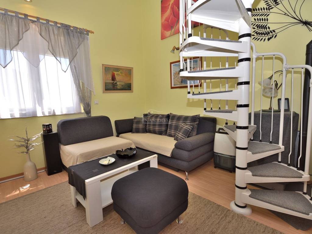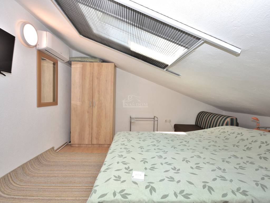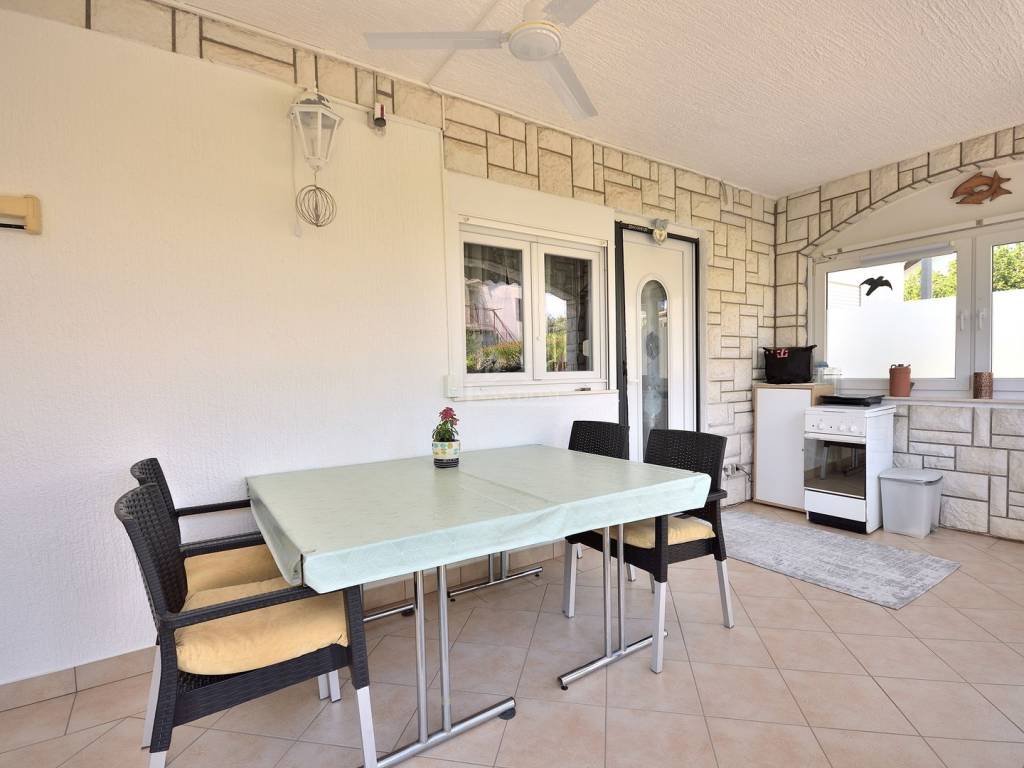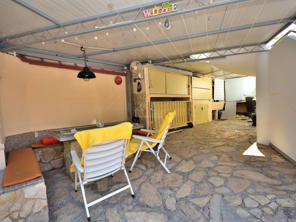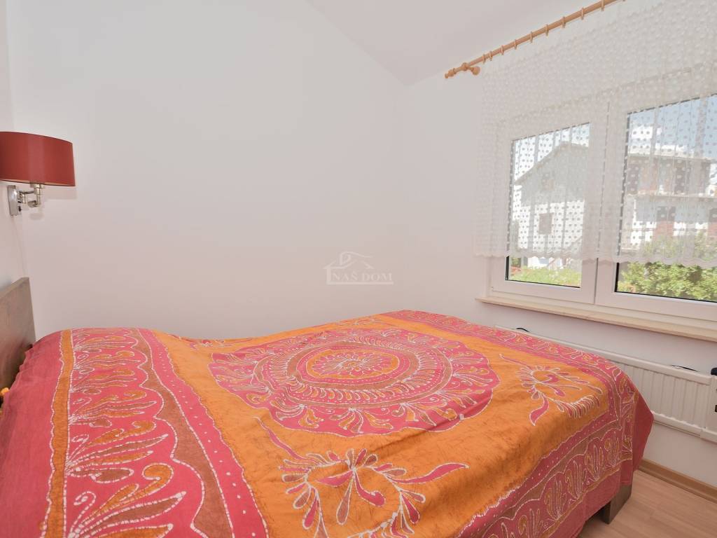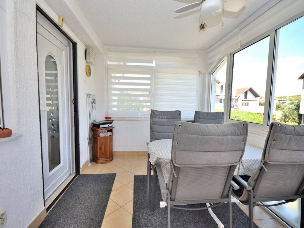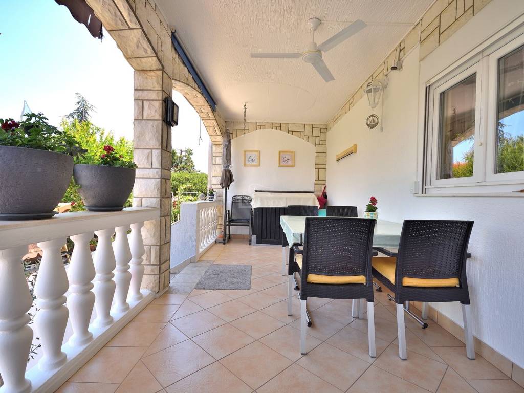 Tribunj - furnished house for sale with a total of two apartments in a quiet location. The house is situated on a plot with a total size of 227m2, a floor area of 81m2, and consists of two floors: raised ground floor and first floor with a gallery. On the ground floor, there is one apartment consisting of a spacious loggia, kitchen with dining area, living room, bathroom, and one bedroom. External stairs lead to the first floor of the house where the second apartment is located, consisting of a terrace, loggia, bedroom, bathroom, kitchen with dining area, and living room. Internal spiral stairs lead to the gallery above the kitchen and dining area, used as an additional bedroom. The house yard is landscaped, paved with natural stone, and includes a seating area, summer kitchen and barbecue, and a small garden cultivated with Mediterranean herbs. The house is air-conditioned and furnished, has a storage room and two parking spaces. It is located in a quiet area, at the end of a dead-end street, close to all amenities essential for a comfortable stay and/or living; it is about 600m from the beach and 900m from the center.