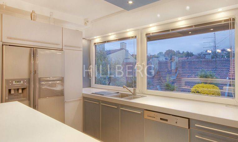 DESCRIPTION :   4  - room apartment measuring  130   m2 ,  situated   on the 4th   floor of a building   with an elevator   in   Medvedgradska  street near Zvijezda.   Tram   and   city center  nearby.  The proximity of   the American School   ( 3  min drive ).  It c onsists of:    -   living room with    dining room  and   kitchen    -   master bedroom   with its own   walk-in   closet   and   bathroom   with   hydro   massage bath-tub   and   sauna    -   2   childrens rooms    - bathroom with shower    -   toilet    Storage, garage   ( 1).    EQUIPMENT:    active telephone line ,  ADSL , air  ( 4),  video surveillance ,  intercom ,  cable TV , satellite TV,  LCD   TV ,  ( 3),  receiver ,  DVD, home   theater ,  stereo,   sound system,   microwave ,  dishwasher ,  washer ,  washing machine   ,   drier, hydro   massage shower ,  underfloor heating .  LOCATION:  Tram station - 100 m  Center - 10 min walk  American International School of Zagreb (Voćarska 106) - 3 min drive  German International School of Zagreb / French International School of Zagreb (Fratrovac 36) - 5 min drive  British International School of Zagreb “Creative Development” (Dedići 102) - 5 min drive  British International School of Zagreb “Bright Horizons” (Sveti Duh 122) - 15 min drive    USUAL TERMS OF LEASE:  Lease Agreement signed for the period of at least one year.  Payment: 1 month in advance.  Guarantee deposit: 1 monthly rent.   AGENCY FEE FROM THE LESSEE: 1 MONTHLY RENT + VAT.