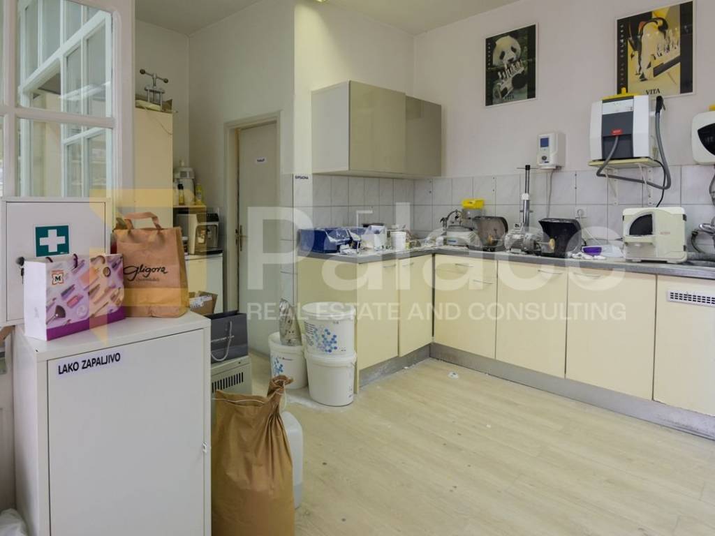 The space can be accessed from the courtyard of a residential-commercial building, and consists of one large room with three smaller glass-separated rooms and a toilet. In addition to the interior part of the commercial space, it also includes a courtyard area.
