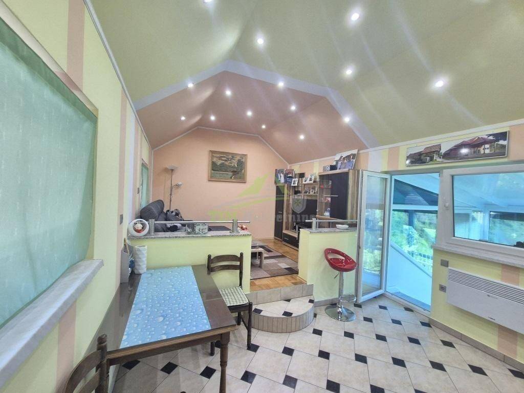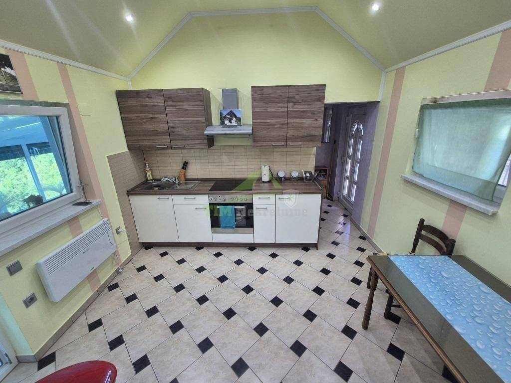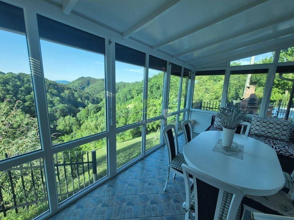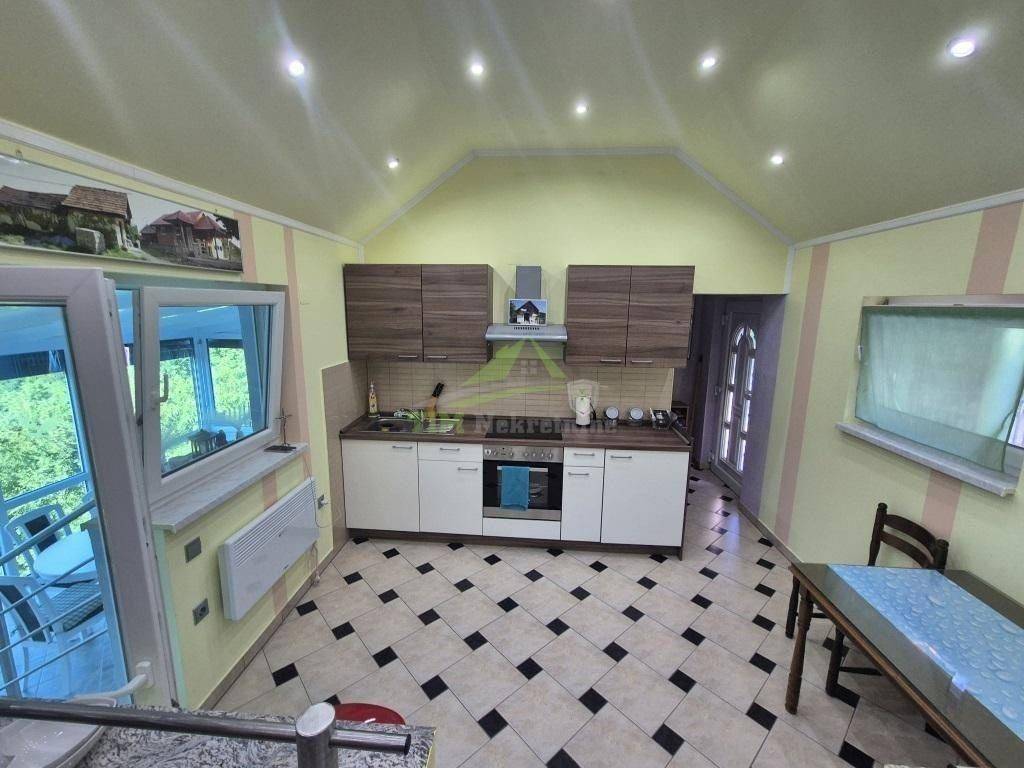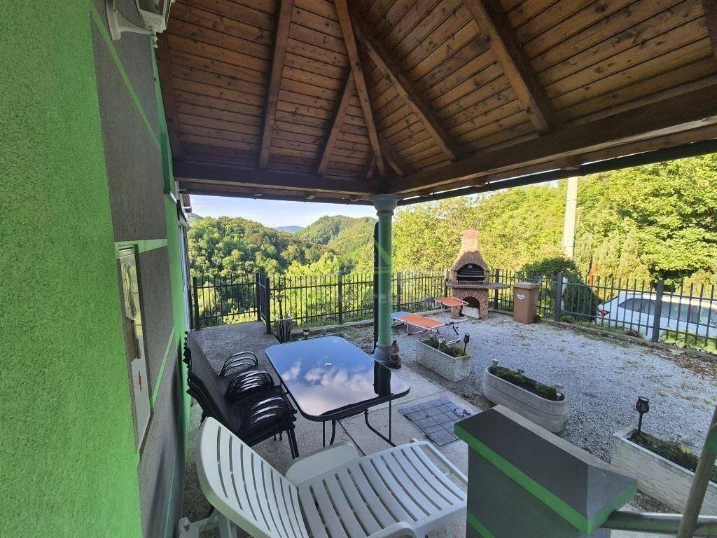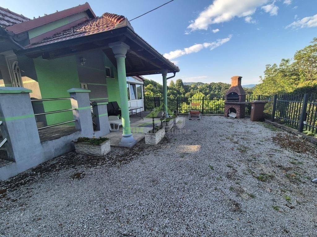 Kuća za odmor površine 56 m2 sa zatvorenom terasom površine 11 m2; na zemljištu ukupne površine 891 m2. Kuća smještena na brežuljku sa kojeg se pruža prekrasan pogled na šume i zelenilo prava oaza mira.Sastoji se od podruma te prizemlja.Priključak struje; vode; grijanje putem peći na kruta goriva; PVC stolarija; kompletno namještena te se kao takva i prodaje.Uredna dokumentacija.