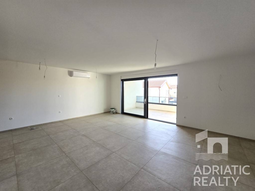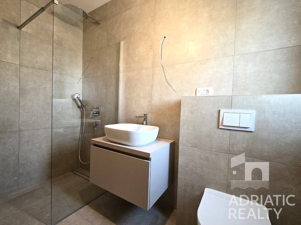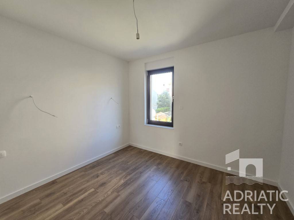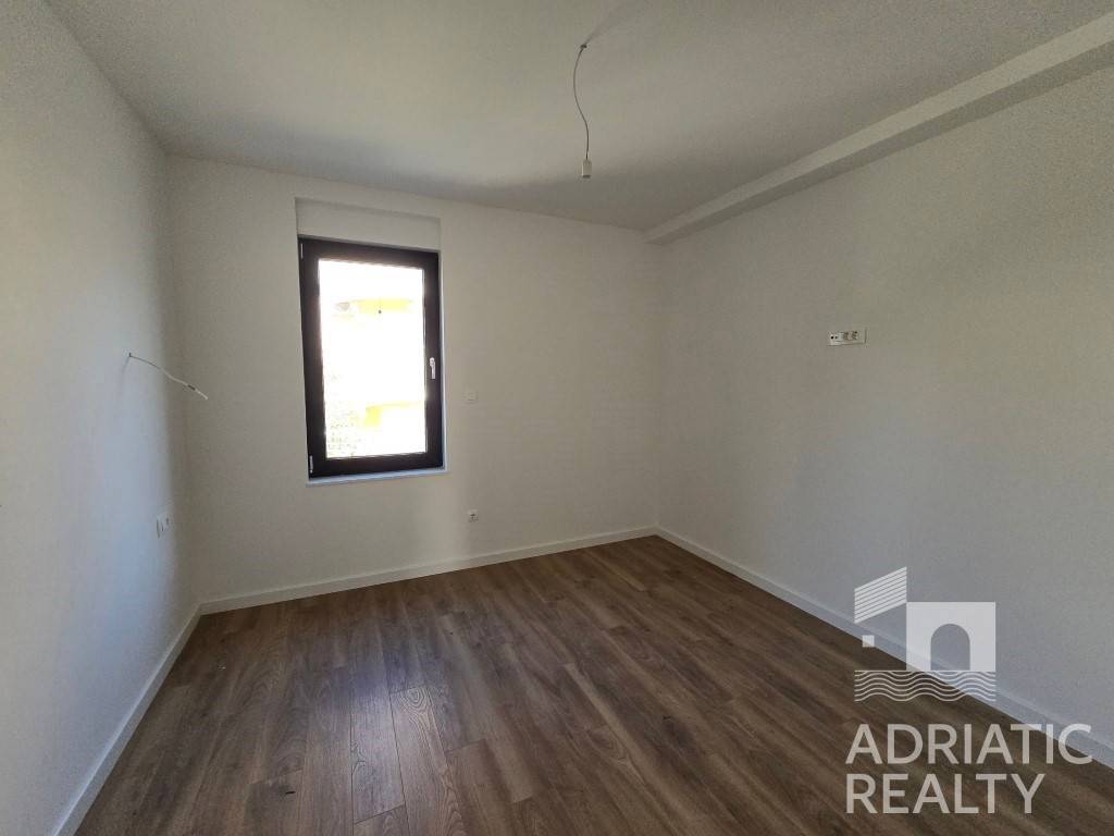 Na prodaju je prostran i moderan apartman S3 smješten na prvom katu suvremene zgrade s četiri stambene jedinice i garažama u Srimi. Neto korisna površina apartmana iznosi 113,09 m2, dok stambeni dio zauzima 104,88 m2. Apartman se sastoji od kuhinje, blagovaonice i dnevnog boravka otvorenog koncepta, tri spavaće sobe, od kojih dvije imaju vlastitu kupaonicu, dodatne kupaonice, predprostora i natkrivene terase. Opremljen je kvalitetnom keramikom, modernom sanitarijom, prozorima i vratima s električnim roletama i komarnicima te protuprovalnim ulaznim vratima. Za dodatnu udobnost, kupaonice imaju električno podno grijanje, dok su sve sobe i dnevni boravak klimatizirani te opremljeni TV priključcima. Apartmanu pripada i garaža, što pruža dodatnu praktičnost i sigurnost.