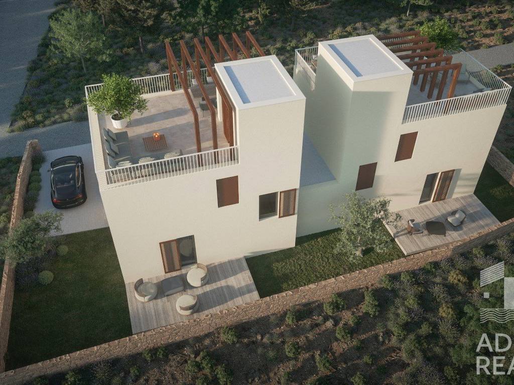 For sale is a modern house, part of a contemporary duplex under construction, located in an excellent position in Tribunj, 1 km from the beach and the center of the town. The completion of construction is planned for the end of 2025.