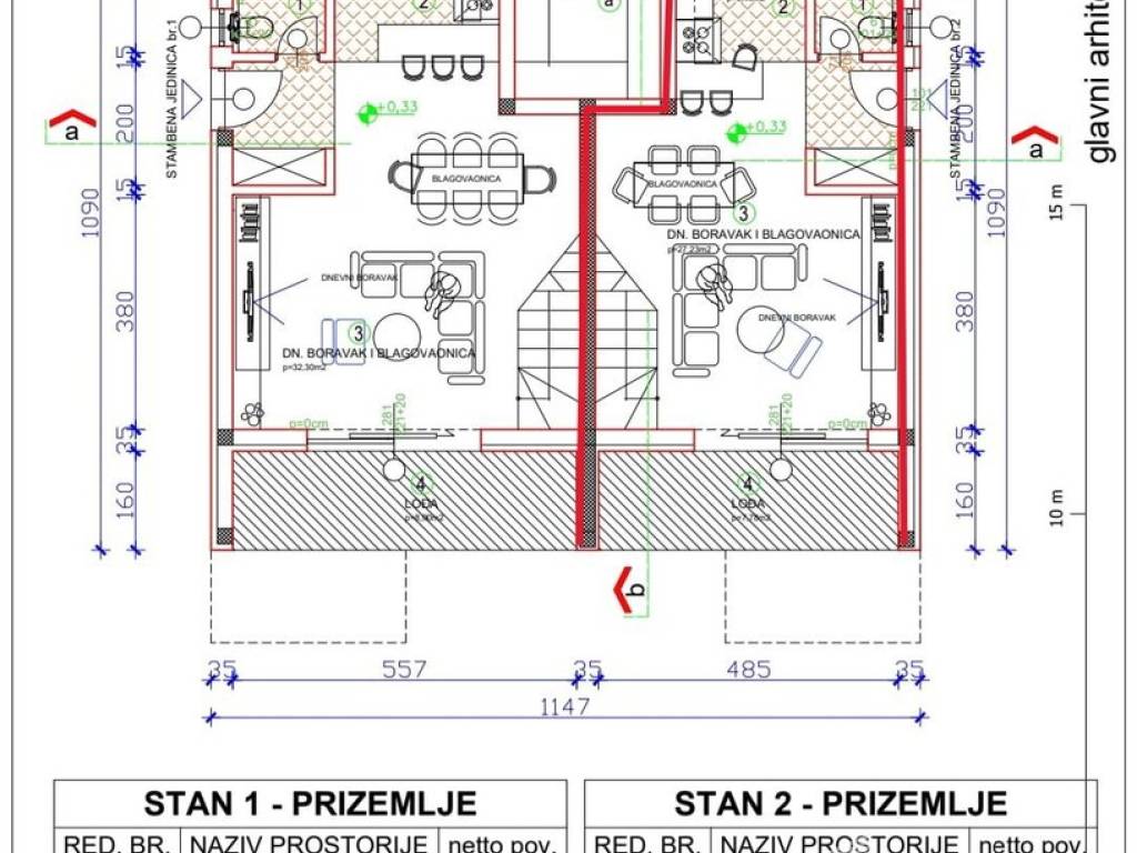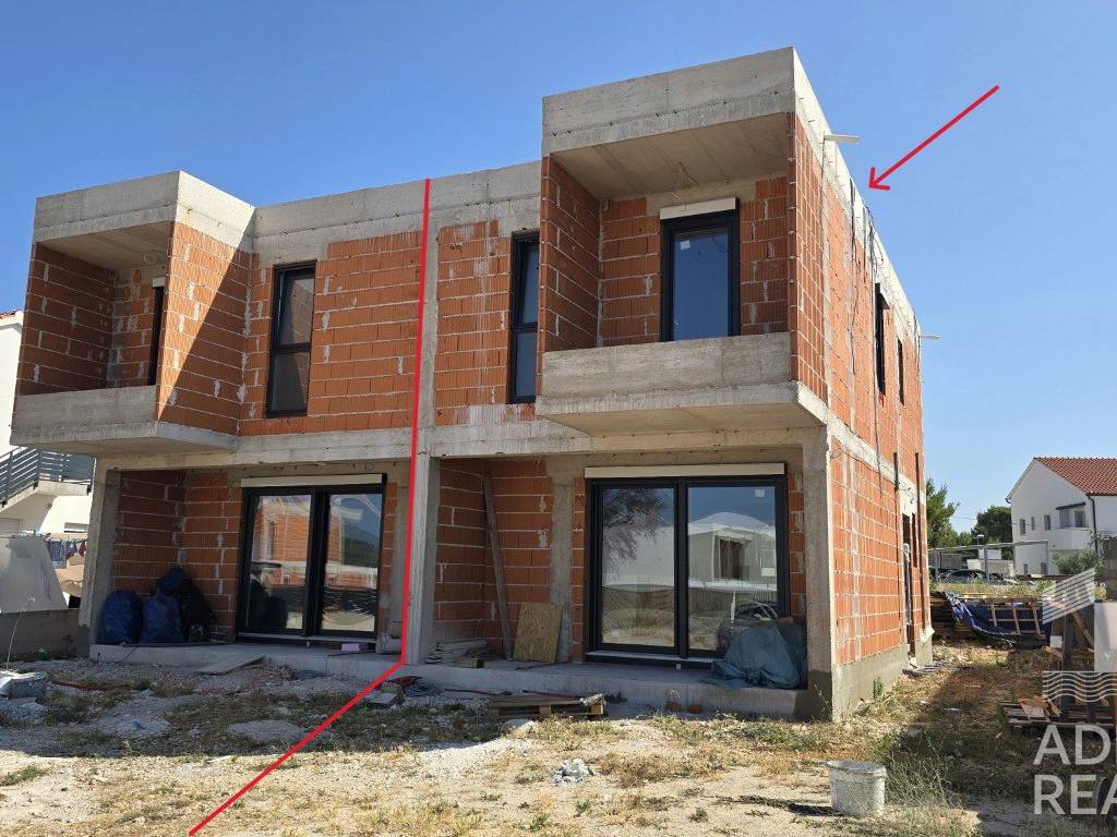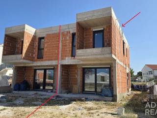 An attractive semi-detached house with modern architecture is for sale in a quiet part of Vodice, approximately 2 km from the center and the beach. The house covers 86.56 m2 and is organized over two floors.