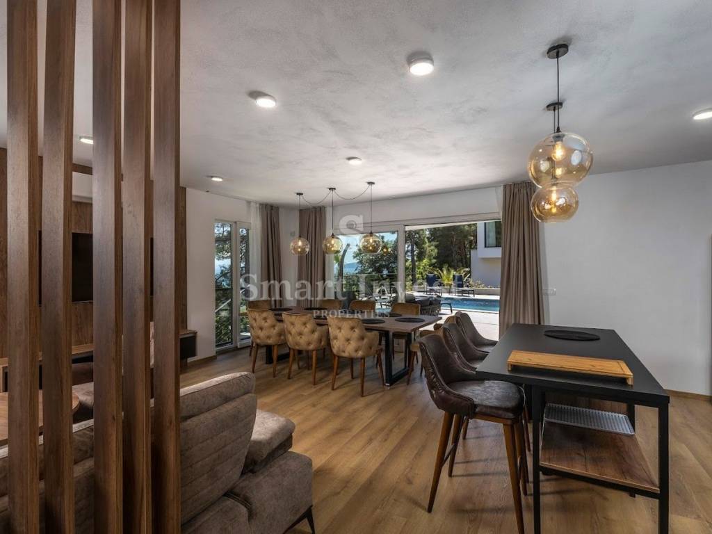 RIVIERA OF OPATIJA - MOŠĆENIČKA DRAGA For sale is a newly built and modernly equipped villa with 7 bedrooms, swimming pool and wellness, in a complex with a total of three villas near the sea. LAYOUT The villa of 430 m2 consists of three floors, has 7 bedrooms and 8 bathrooms. In the basement there is a corridor, two bedrooms with en-suite bathrooms, wellness with sauna and Jacuzzi, laundry room. The bedrooms and wellness area have access to the beautifully landscaped garden. On the ground floor there is an entrance hall, spacious living room with kitchen and dining area with access to the outdoor terrace with a swimming pool, one bedroom with en-suite bathroom, another additional bathroom. Upstairs there is a corridor and four bedrooms with en-suite bathrooms. One of the rooms has access to its own loggia. EQUIPMENT The villa has a landscaped yard and garden, it is modernly furnished and equipped: • Smart Home system • underfloor heating on a heat pump • air conditioners in all rooms • premium aluminum carpentry • video surveillance • sauna, Jacuzzi • 3 outdoor parking spaces. The villa is surrounded by a beautiful Mediterranean pine forest, so it exudes peace, it is located only 500 meters from the famous beach in Mošćenička Draga and top restaurants and taverns. It represents a unique property for investment in luxury villas for rent (successfully rented from the 2022 season) or as a home for a larger family. For more information and a viewing appointment, call: +385/99/320-0008 ID CODE: 13428 Agencija Opatija Ovlašteni posrednik Mob: +385/99/320-0008 E-mail: office@smart-invest.hr www.smart-invest.hr