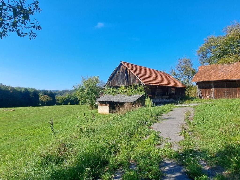 MRAČIN: S. ESTATE, HOUSE, FARM FACILITIES, PLOTS, 5083 m2, €39,000 ATTENTION: Opportunity to coexist with nature in an ethno style Just ten kilometers from Duga Resa, in the direction of Rijeka, following the old but renovated Lujzinski road, there is a tame hamlet of Mračin and a farm, with the necessary infrastructure on offer. On a plot of 5083 m2, there is a wooden oak house with a basement, area 93 m2, dimensions approx. 15mx 6m in good condition, with the necessary minor adaptation and arrangement for housing, and farm buildings / stable, hayloft area approx. 15 x 5.5 (81 m2) and a spacious storage area for agricultural inventory, etc., area approx. 8 x 5 m. Next to the building there is also a cistern with water of approx. 10,000 liters of rainwater with improvised filters. Electricity and water supply are connected and are paid for in a lump sum. Next to the house is a spacious pasture, or arable land, depending on the purpose. The plot also has walnuts, apples, grapevines, pines, etc. The access road to the plot is paved, as is part of the yard. The facilities are not damp because they are on elevated terrain and are only about fifteen minutes away on foot along a forest path, to the Dobra River, restaurants and shops. The property is suitable for any type of agricultural production, fruit growing, beekeeping, livestock farming or breeding of smaller and larger domestic animals or, if desired, breeding special pets. Returning to a good old warm home with four-legged pets /horses, cows, sheep.../ will enliven your everyday life with fullness of life and meaning. For this very occasion, we offer you the opportunity for hobby horse breeding, etc., if you are looking for the best for your pets, because they reflect your personality and are effective therapy for the body and spirit. You can get this complex in nature for €39,000. Ownership documentation is in order, title deed 1/1. Real estate (house and hayloft) is mapped and registered.