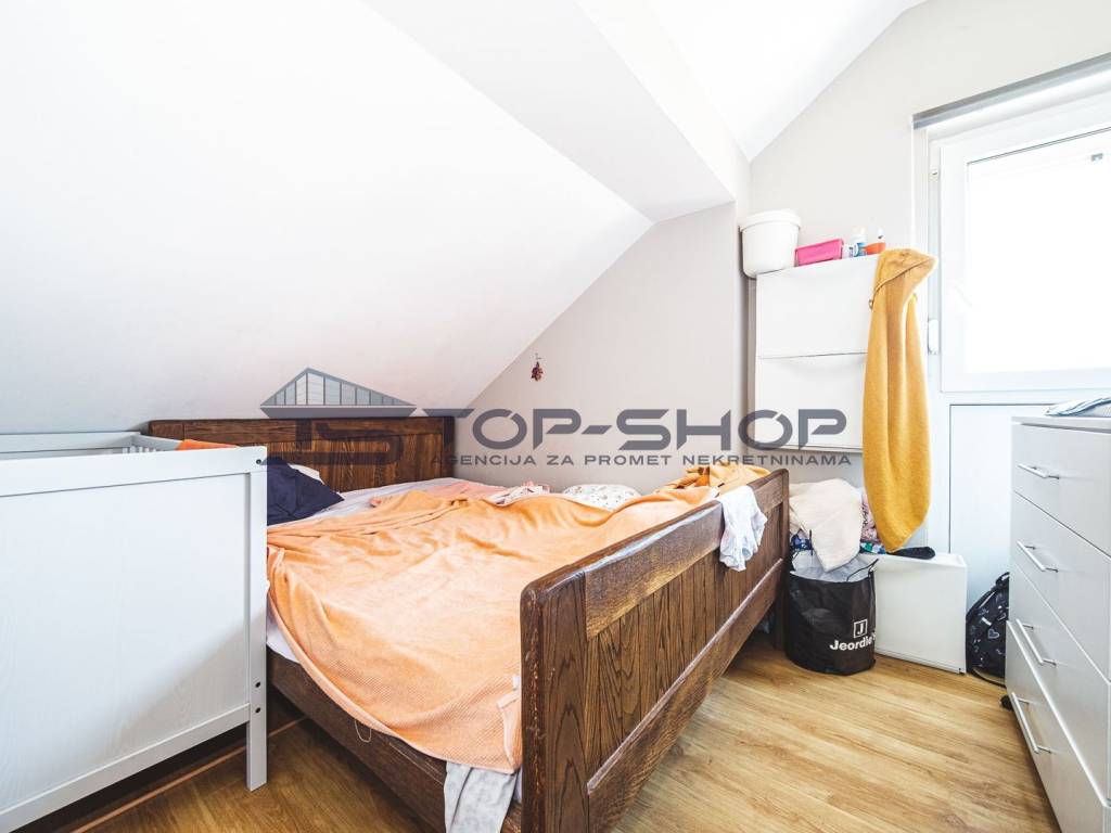 - etaža: unutarnjeg stepeništa, kuhinje s blagovaonicom, dnevnog boravka, spavaće sobe i odvojenog toaleta.