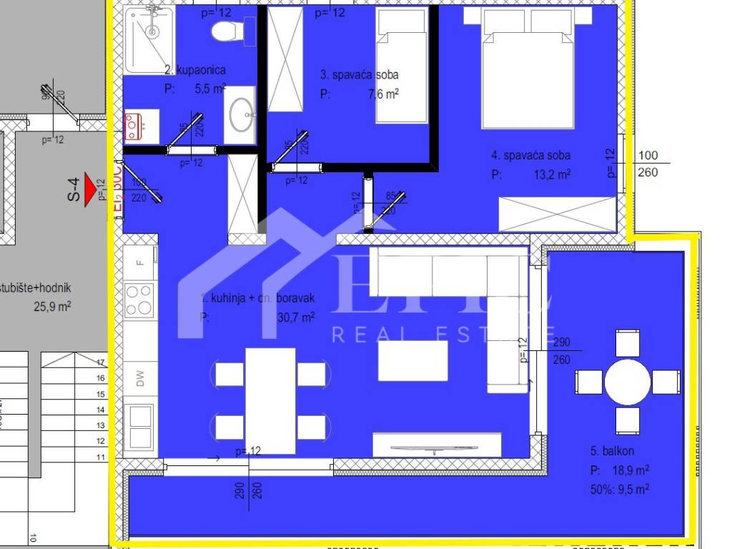In the place of Diklo near Zadar, a modern building with 9 residential units is being constructed, located 50 m from the sea, with a beautiful view of the crystal blue sea, nearby islands, the beach, and the far-famous Zadar sunset.  The building has its own yard with a beautifully landscaped garden enriched with indigenous plants and greenery to achieve the best Mediterranean atmosphere. This modern new building is situated in a quiet part of Diklo right by the sea, close to all the necessary amenities of urban life (shops, cafes, and restaurants). The design took into account the application of original building values, such as simplicity, functionality from which comfort - quality and comfort of the surrounding terrain - yard as well as the internal space follows.