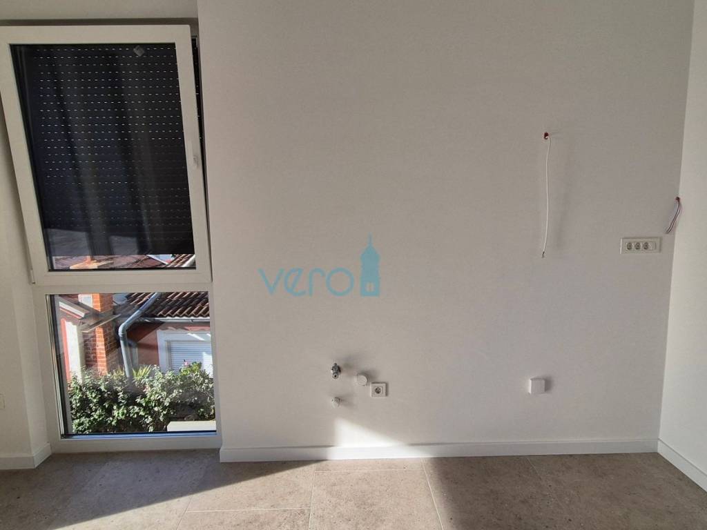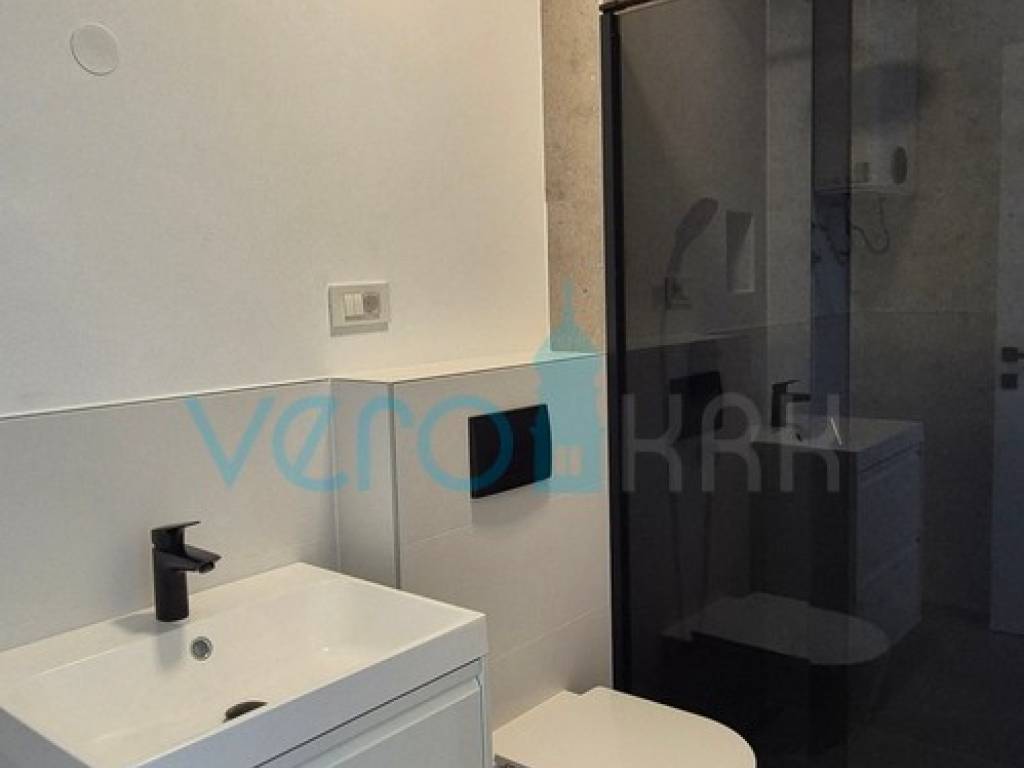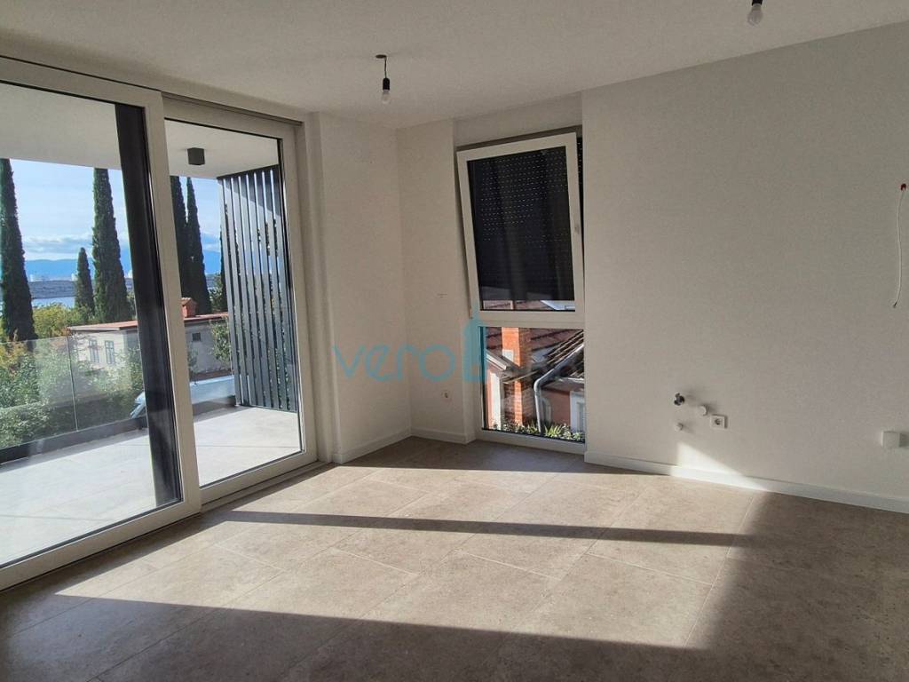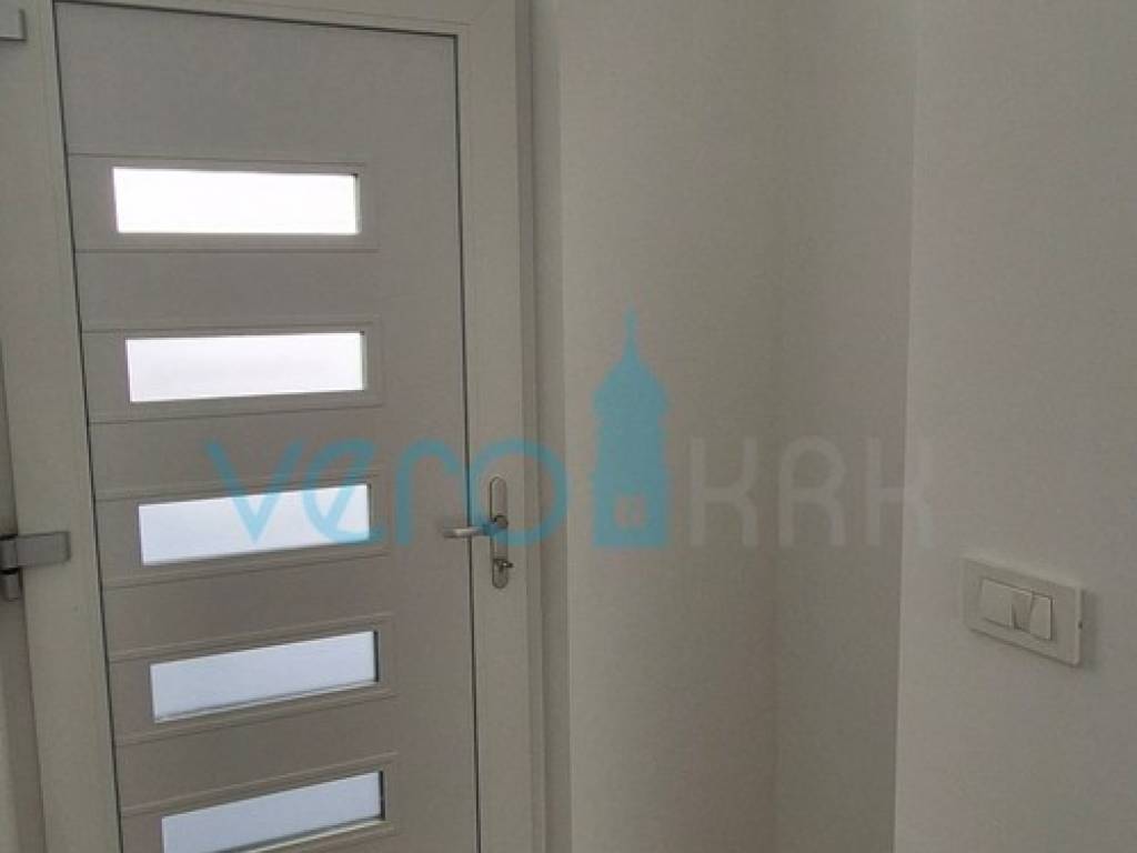 Island Krk, Omišalj, For sale is an apartment with an area of 67.56 m2 on the first floor of a building with a yard of 56 m2, only 170 m from the sea. The apartment consists of a hallway, bathroom, two bedrooms, kitchen, dining room, and living room in an open space with access to a covered terrace offering a sea view. The apartment also includes one designated parking space in the building's parking lot. The building is constructed from the highest quality materials and has a total of four apartments equipped with security doors, electric underfloor heating, PVC joinery with electric shutters, and first-class ceramics and sanitary ware.