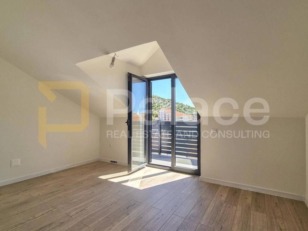 A spacious and modern duplex apartment in a newly built building is for sale in an attractive and quiet location in Meterize, Šibenik. The apartment is located on the first and second floor of a small residential building and is characterized by quality construction, underfloor heating, as well as a garage and storage room in the basement.