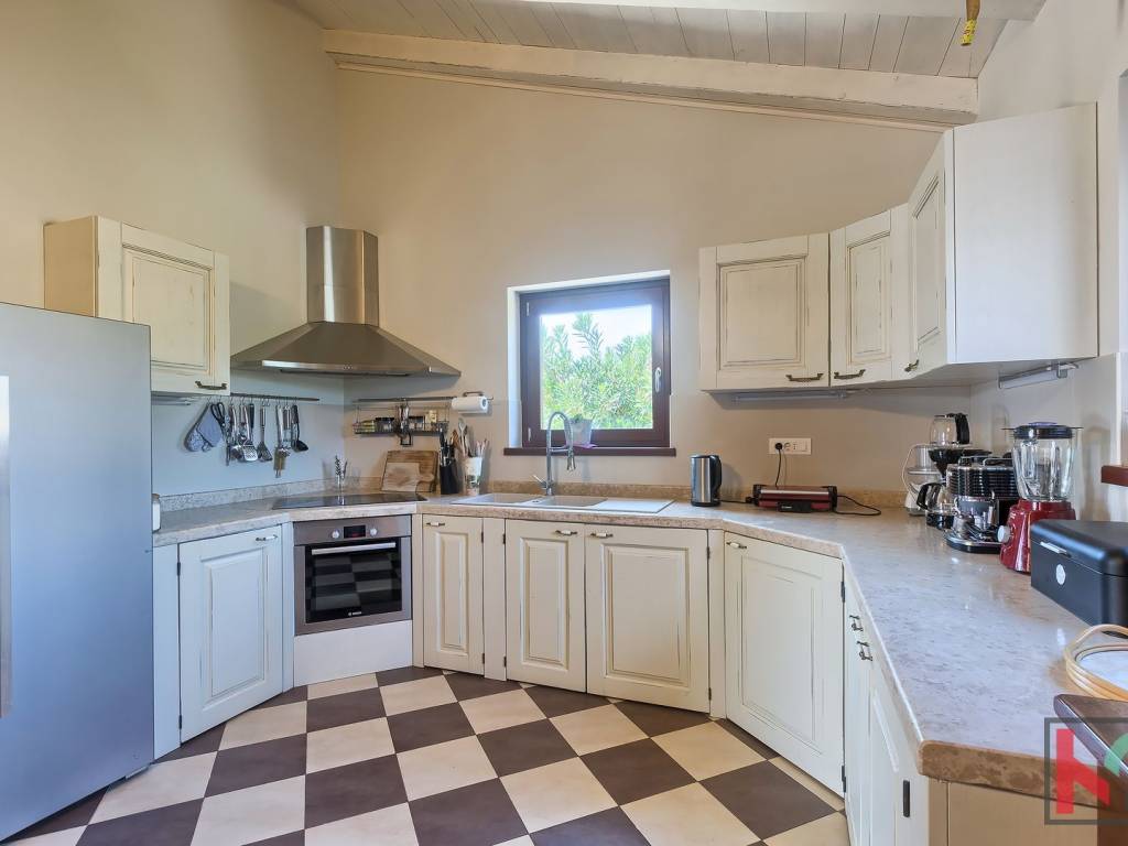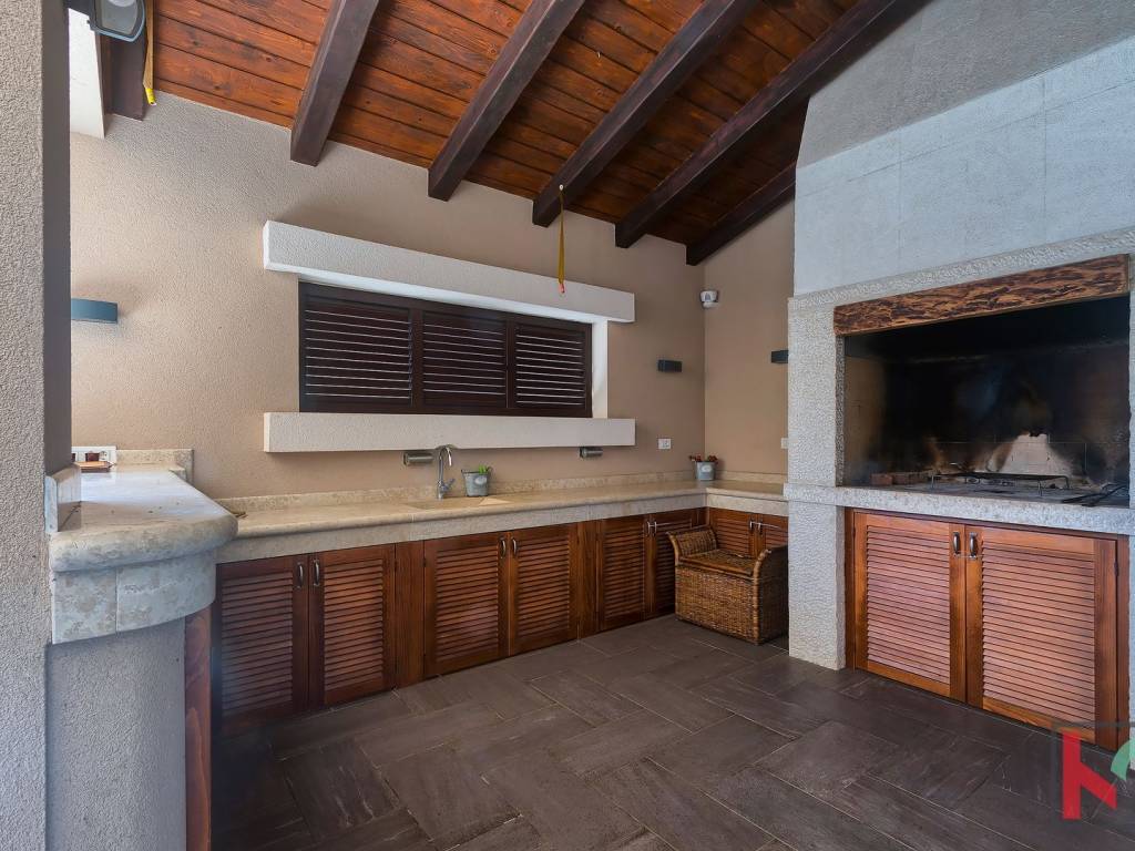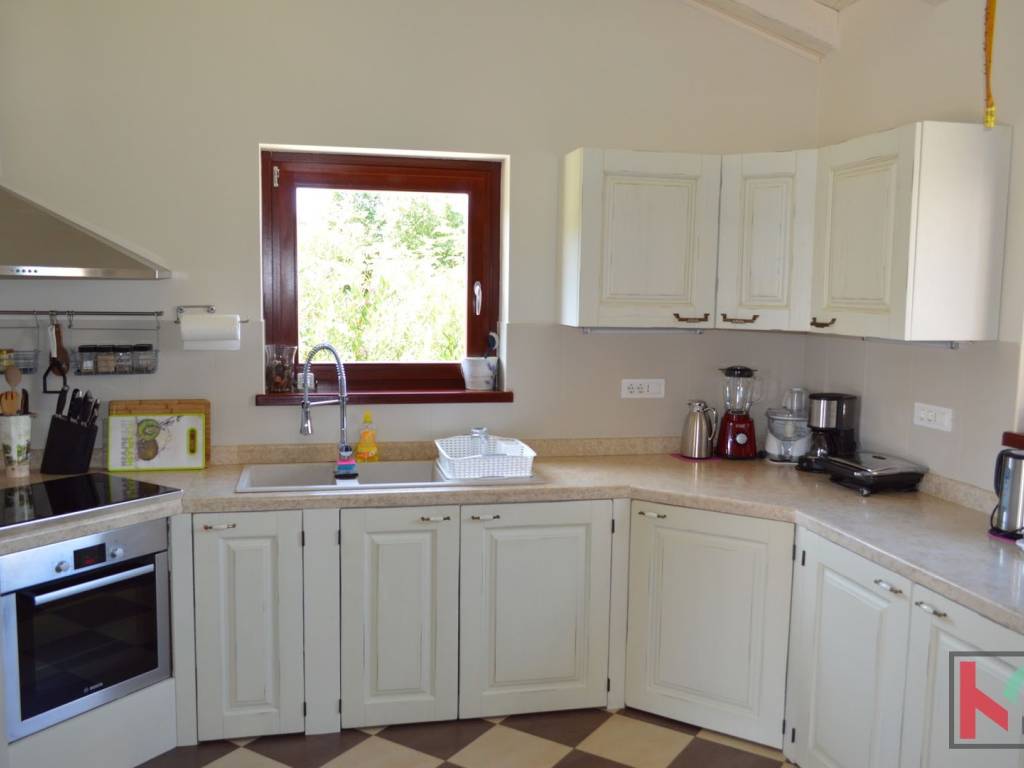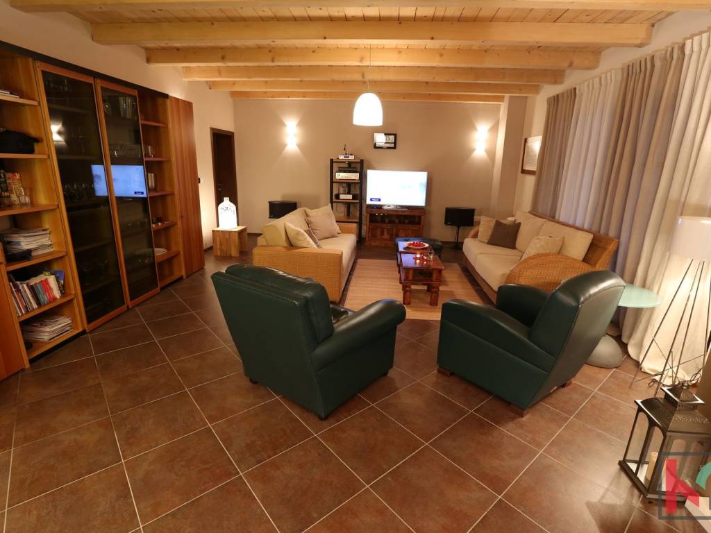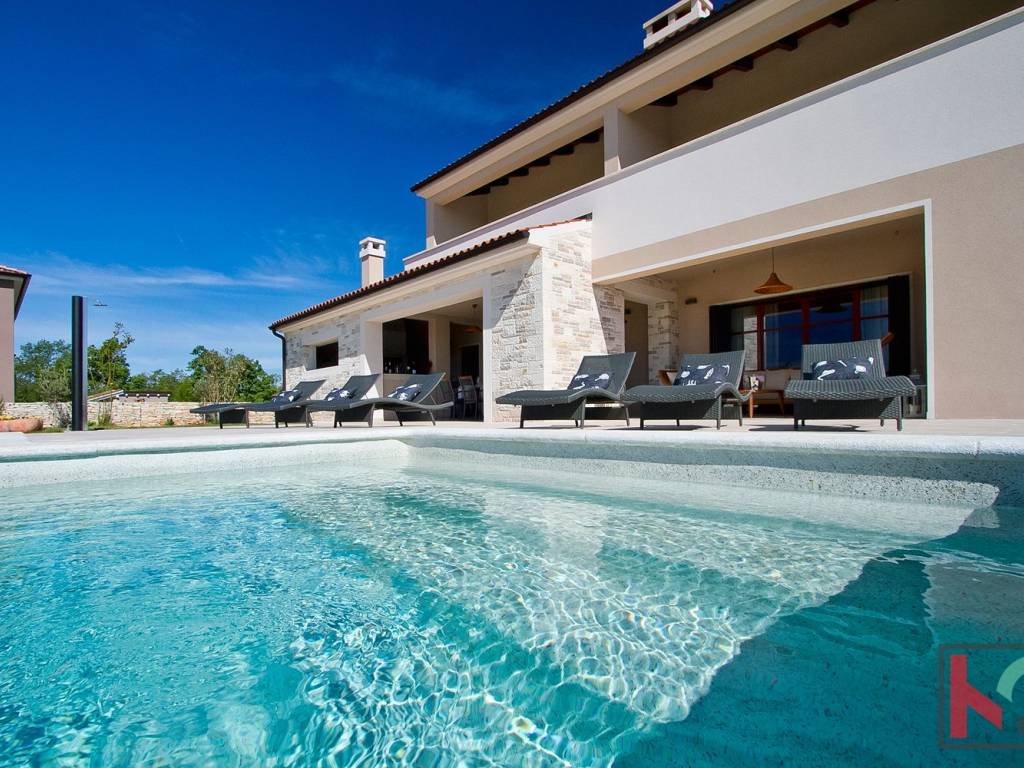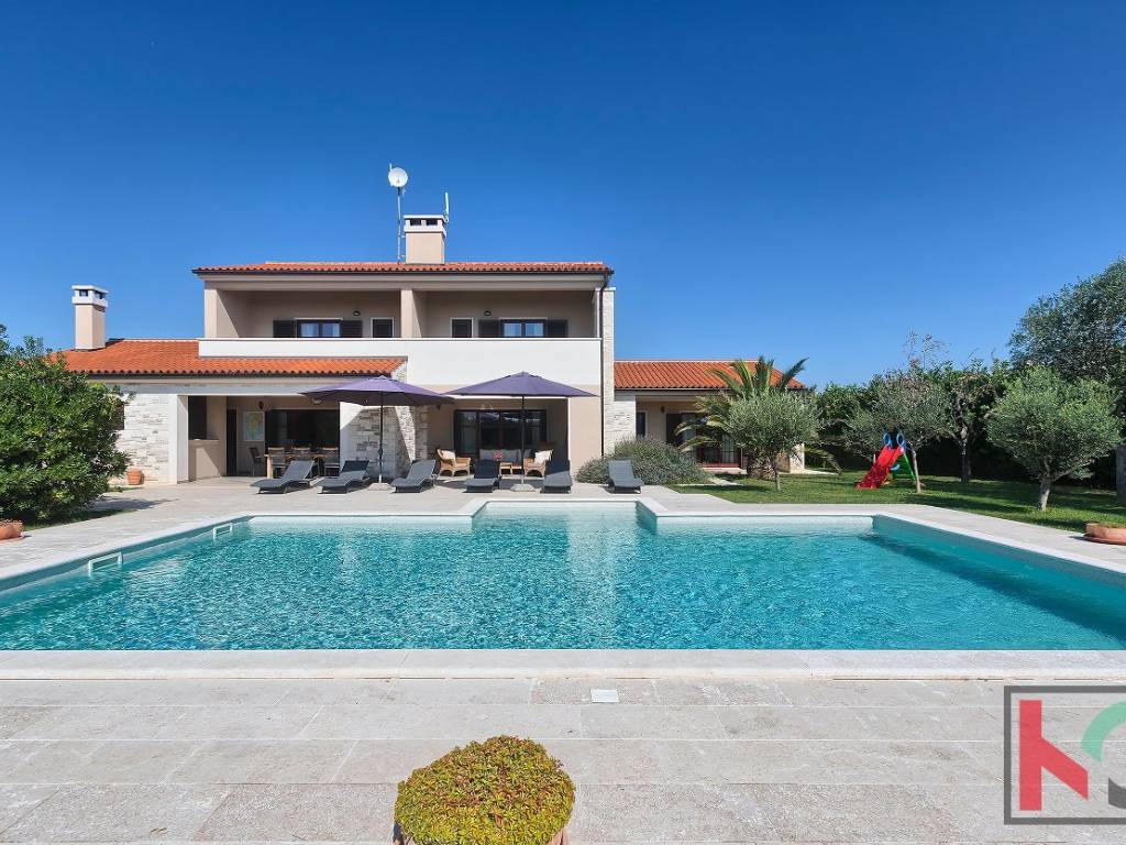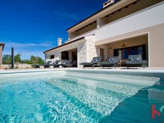 We are selling an attractive villa located in a quiet location in Juršić, with a total area of 400m2 with a landscaped garden area of 1986m2 with an irrigation system of 30 trees, several palms and trees with fruit trees.