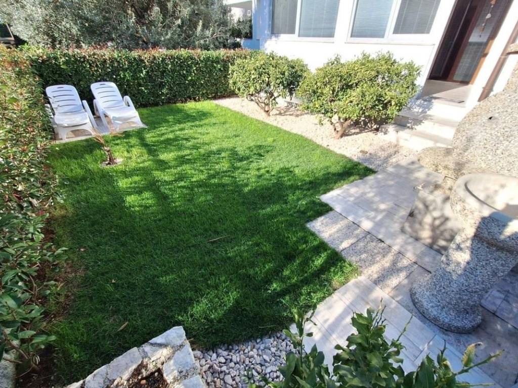 For sale is an apartment located in an extremely attractive location in the town of Krk, only 70 meters from the sea and the beach. The total area is 74.40 m², of which 54.80 m² is closed living space, while the closed terrace of 19.60 m² further contributes to the functionality of the space. The apartment is located on the ground floor of a residential building and consists of a living room with kitchen and dining room, two bedrooms, bathroom and hallway. It has a landscaped garden of 74 m², easy to maintain, as well as one parking space. The property is being sold furnished, air-conditioned, with the addition of a wood-burning stove. Due to its location and sea view, it represents a rarity on the market and a good opportunity to buy a property in the immediate vicinity of the beach.