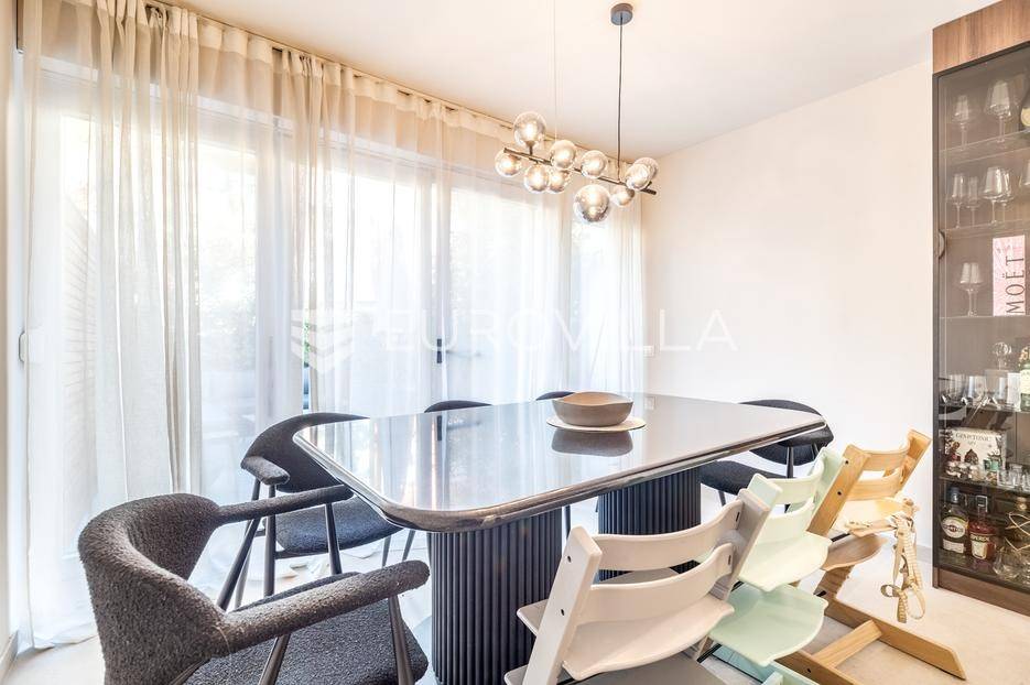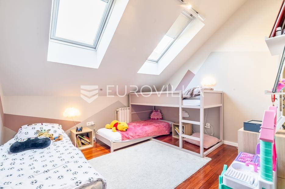 ZAGREB, LUKSUZNA KUĆA NA JARUNU, PRVI NAJAM, 4 ETAŽE, VRT, DIZAJNERSKI NAMJEŠTAJU ponudi imamo prekrasnu kuću za najam na jednoj od najtraženijih zagrebačkih lokacija - Jarunu, svega nekoliko minuta šetnje od jezera i brojnih sadržaja koje ova lokacija nudi.Kuća je potpuno adaptirana 2023. godine korištenjem najkvalitetnijih materijala i dizajnerskog namještaja, a ovo je prvi najam, što je čini savršenim izborom za one koji traže besprijekorno uređeni, luksuzni dom.Raspored kuće (4 etaže):Prizemlje:Prostorija za teretanuVešeraj / praonica rubljaBiciklarnik sa garažnim otvaranjempolu etaža:Open-space kuhinja i blagovaonica s izlazom na uređeni vrt, idealan za opuštanje, dječju igru ili druženjawc1. etaža:Elegantno uređen dnevni boravak s puno prirodnog svjetla i ugodnim ambijentom1.5. etaža:Master spavaća soba s vlastitomen-suite kupaonicom, pruža potpunu privatnost i komfor2. etaža:Dječja soba s izlazom naloggiuDodatna kupaonica2.5 etaža:Uredski prostor (idealno za rad od kuće)Još jednadječja ili gostinjska sobaDodatne pogodnosti:Jedno parkirno mjesta ispred kućeDodatna dostupna parkirna mjesta u okolici - lako i bez stresaVrhunska klimatizacija i grijanjeVisoki stropovi, moderan dizajn, vrhunska rasvjetaPotpuno opremljena kuhinja s vrhunskim aparatimaO lokaciji - JarunJarun je poznat kao jedno od najugodnijih i najzelenijih naselja u Zagrebu, idealno za mlade obitelji i aktivan obiteljski život.U neposrednoj blizini nalaze se:Jezero Jarun - popularna zagrebačka rekreacijska zona s uređenim plažama, biciklističkim i pješačkim stazama, teretanama na otvorenom i sportskim terenimaBrojne škole i vrtići, što ga čini idealnim za obitelji s djecomTrgovine, kafići, restorani, dom zdravlja, tržnica, fitness centriOdlična povezanost javnim prijevozom i jednostavan pristup centru gradaOva kuća nudi mir, udobnost, moderan dizajn i funkcionalnost, uz sve pogodnosti koje pruža življenje u jednom od najpoželjnijih kvartova Zagreba.Za dodatne informacije i dogovor oko razgledavanja, slobodno nas kontaktirajte - luksuzan dom vas čeka!