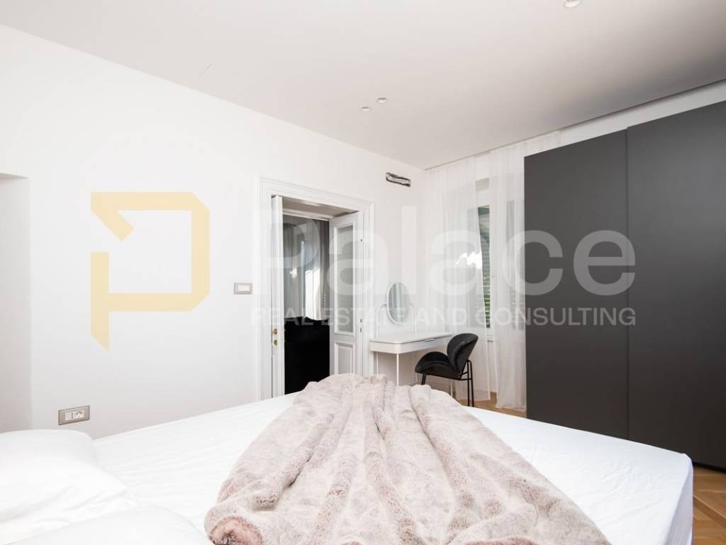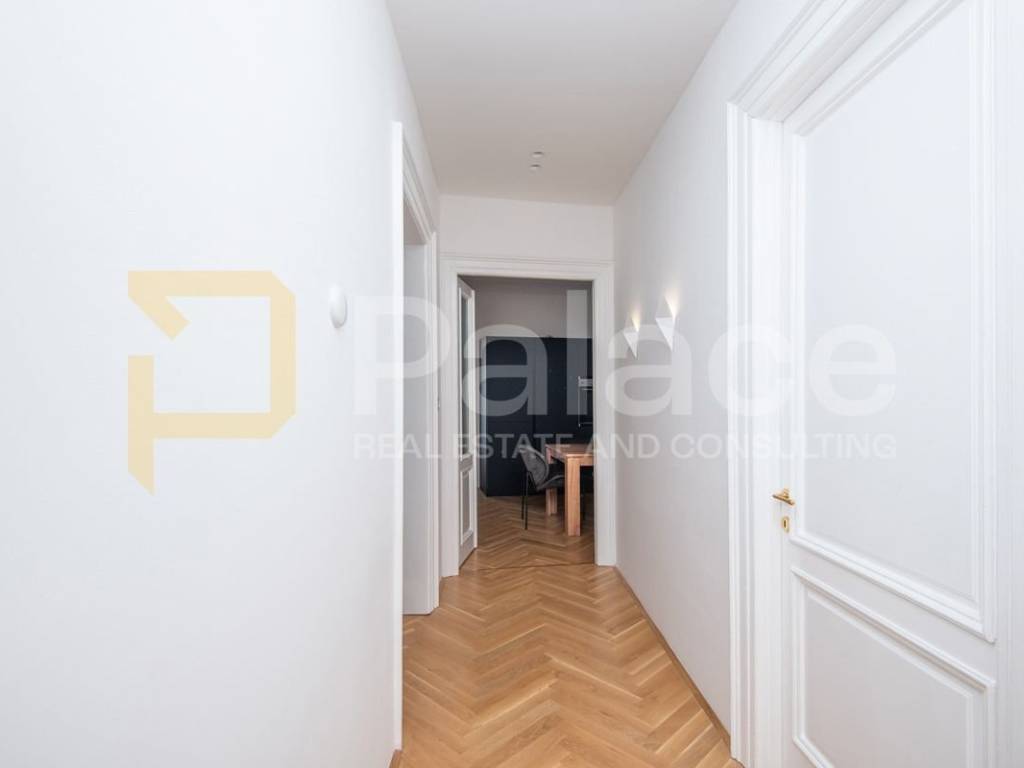 Additional comfort is ensured by underfloor heating in the bathrooms, air conditioning in all rooms, additional ceiling air conditioning, wall lighting, and built-in wall speakers. The restored internal doors maintain their original appearance and further emphasize the character of the space.
