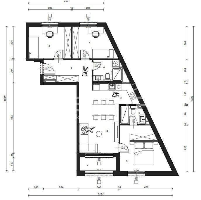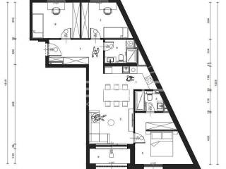 Sastoji se od ulaznog hodnika, kuhinje s blagovaonicom i dnevnog boravka, 3 spavaće sobe, 2 kupaonice i loggie. Uz stan je potrebno kupiti garažno mjesto i spremište.