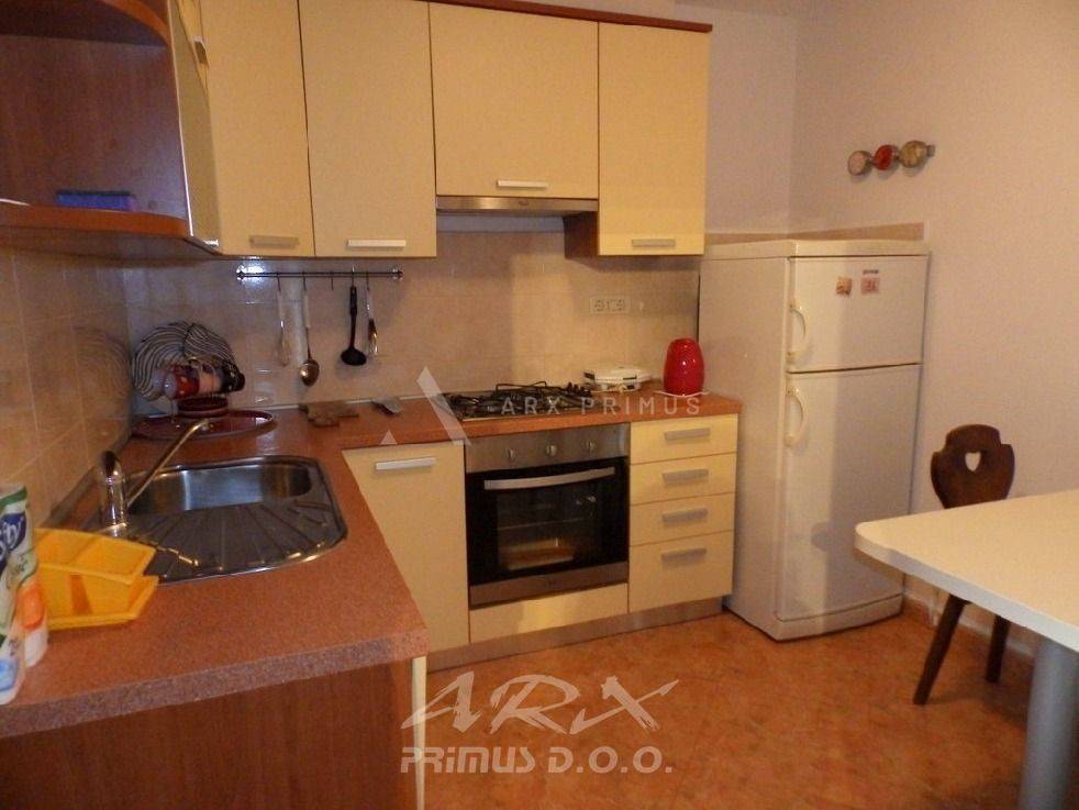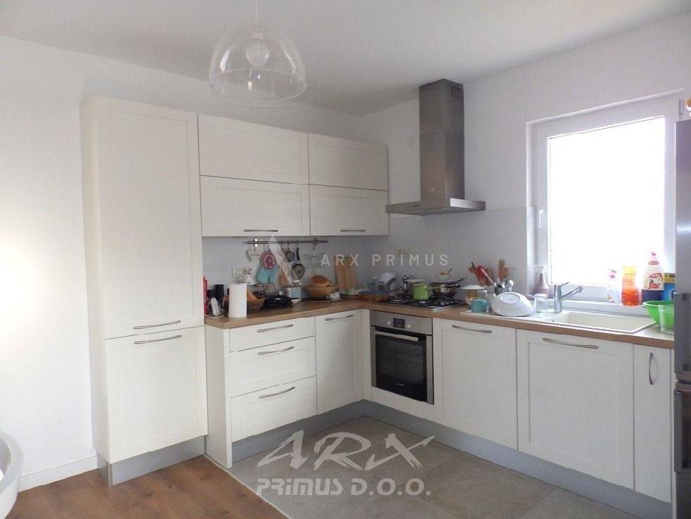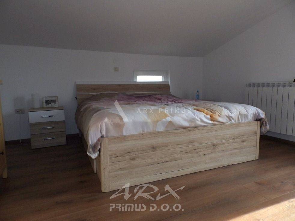 Two storey apartment  (133,58 m2) ground floor consists of covered entrance, hallway, kitchen with dining area, living room, storage room and large terrace, the attic consists of 3  bedrooms, bathroom, and internal staircase.
