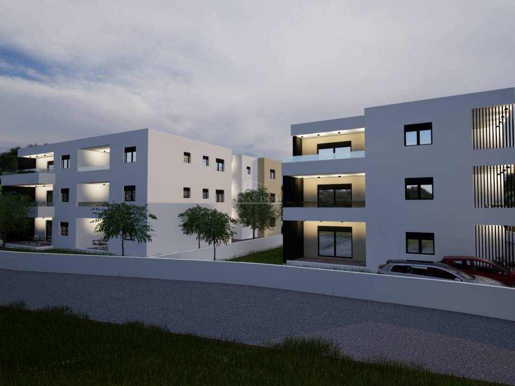 Vodice – apartments for sale in a new building with sea views. The building, with a total of 6 residential units, has three floors: ground floor + first floor + second floor. Each floor contains two apartments. The modern-looking building is currently being constructed with quality materials, and the planned completion date with simultaneous move-in is summer 2026. The apartments are sold on a turnkey basis. They are oriented east-southeast and are located in a quiet area, approximately 750 m from the center and the nearest beach.