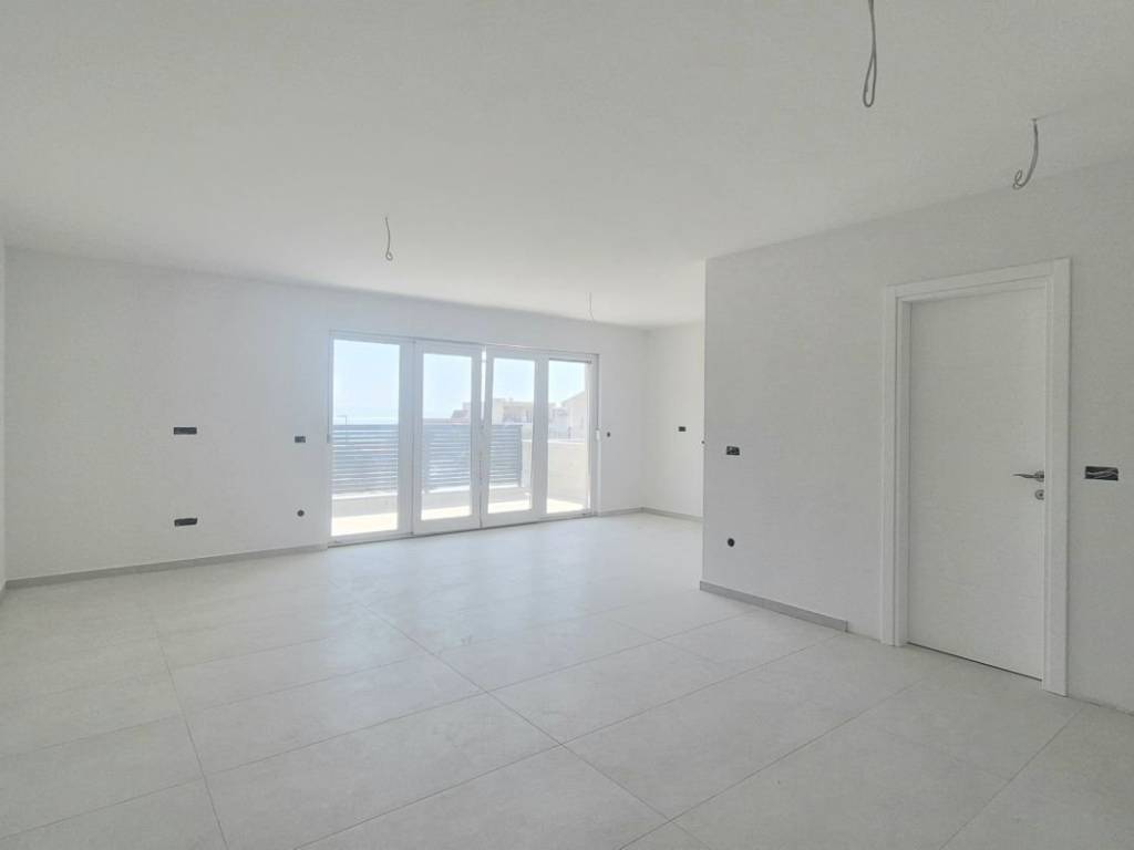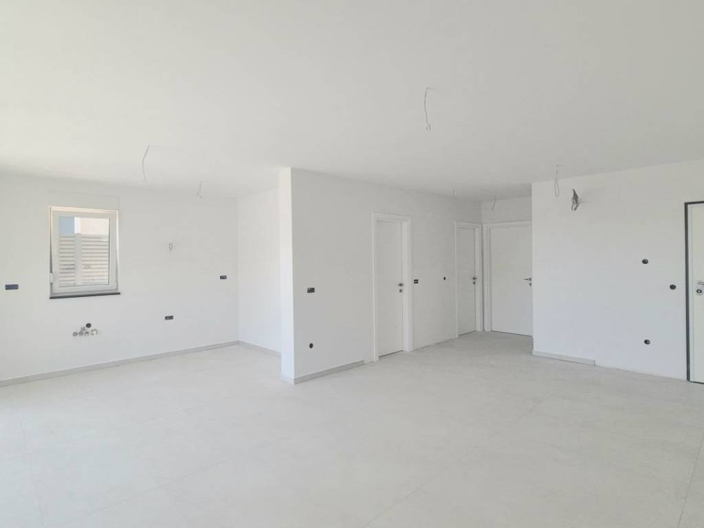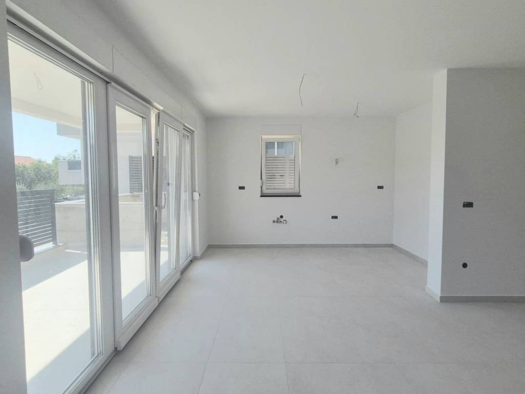 A modern ground-floor apartment is for sale in a smaller newly built residential building with a total of six units. The net area is 84.98 m², and the layout includes a living room connected to the kitchen and dining area, two bedrooms, a bathroom, a covered terrace, and a private garden. The apartment is equipped with air conditioning in every room, a video intercom, and secure entrance doors. High-quality first-class ceramics, an aluminium fence, and a well-insulated façade highlight the quality of construction. A garage or outdoor parking space, as well as a storage room, can be purchased at an additional cost. The apartment offers a partial sea view, and the beach is 550 meters away. All amenities are nearby, and the buyer is exempt from paying real estate transfer tax.
