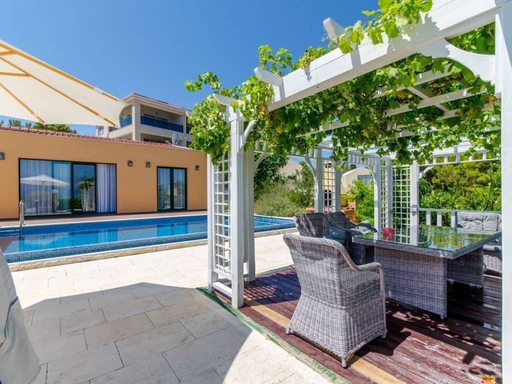 For sale is a charming house offering 77 m² of living space, situated on a plot of approximately 430 m². This modernly designed property provides the perfect combination of comfort, functionality, and a Mediterranean atmosphere.   The house consists of two bedrooms, each with its own private bathroom, a spacious living room, and a kitchen with a dining area. Every room has direct access to a large terrace, which serves as a true oasis for relaxation; featuring a heated swimming pool, an outdoor dining area, and a sunbathing zone ideal for enjoying warm days.   The property boasts an open sea view and includes a private parking space. Just 100 meters from the house, you’ll find a beautiful, well-maintained pebble beach and crystal-clear sea – easily reachable within minutes.   This is a newly built property that has never been lived in and is being sold fully furnished – move-in ready or ideal for tourist rental without any additional investment.   An excellent opportunity for anyone seeking a high-quality property by the sea, whether for personal use or as an investment.