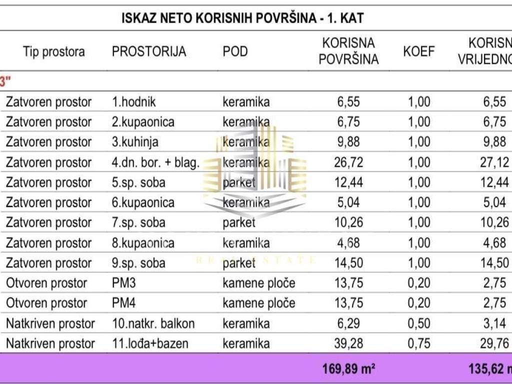 The total net living area is 135.62 m², while the gross residential area amounts to 169.89 m².