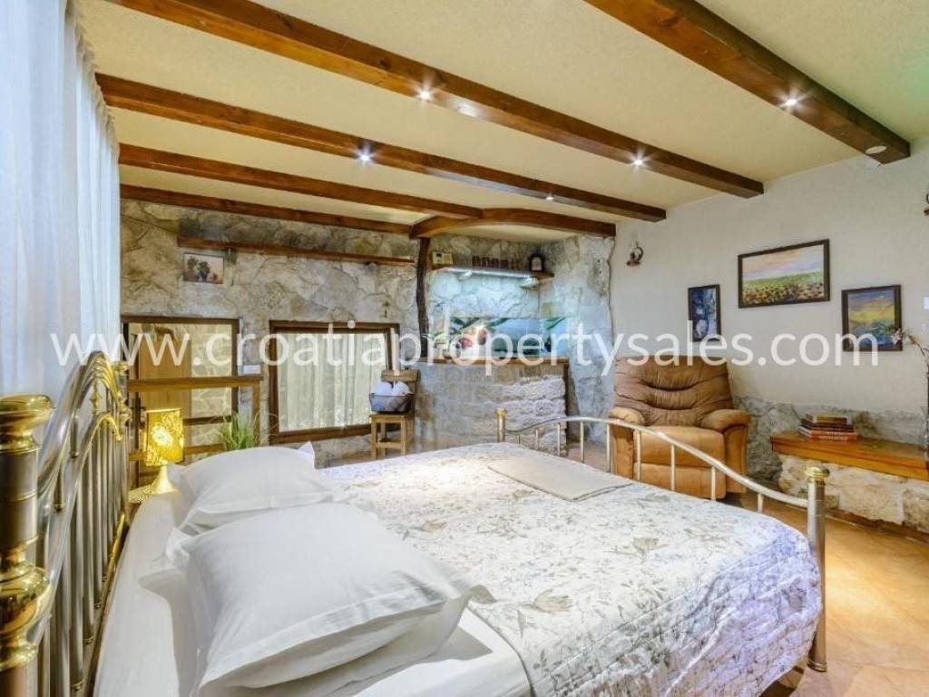 Traditional house with a secluded pool - a perfect combination of peace, nature and comfort.For sale is a charming stone villa with a pool located in an extremely quiet and isolated location ideal for all those looking for privacy, silence and an escape from the city bustle.This authentic house built in the spirit of local architecture exudes warmth and character. Surrounded by nature, it offers complete peace and intimacy, without neighbors nearby, noise or traffic.It consists of a ground floor, mezzanine and first floor. On the ground floor there are two bedrooms, a bathroom, a kitchen, a dining room and a living room with access to a large southern terrace where there is a space for socializing with an outdoor barbecue and a bar.On the mezzanine there is a large bedroom with a bathroom and a laundry room.On the first floor there is a bedroom with a private bathroom, a storage room and a wine cellar.In front of the villa there is an overflow pool that merges with the sea with 6 jets and electrolysis.The property is being sold fully furnished and has been used as a tourist rental until now.If you dream of an authentic property that provides complete peace and natural ambience, this house is the right opportunity.
