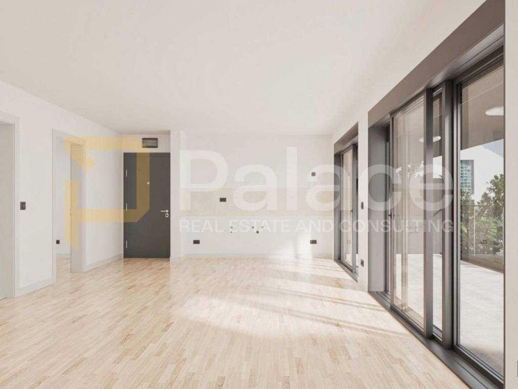 The apartment consists of two spacious bedrooms, a bathroom, a living room, and a kitchen connected in an open concept, with a large terrace of 21m2.