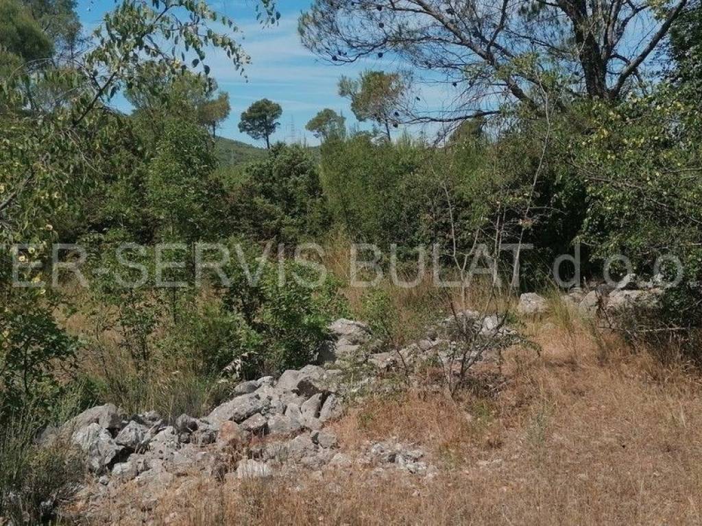 The building plot is located in the village of Rakovo near Dubrava, not far from Šibenik. It has an area of 1,100 sqm and a fairly regular shape, about 17 m wide and about 67 m deep. The plot is overgrown with tall bushes and thickets. The location is quiet, and an access road runs along the field. The first house is about 35m away, so all infrastructure is nearby.