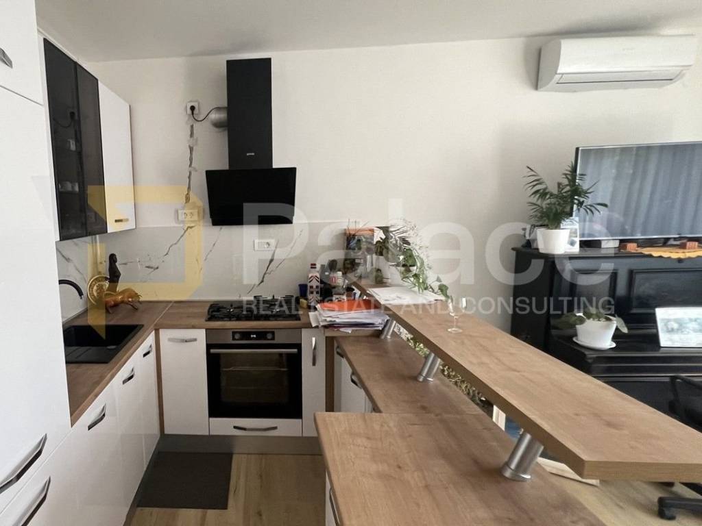 The apartment consists of a spacious covered terrace with a beautiful view, a kitchen and dining room, a spacious living room, 2 bedrooms, a hallway, and a bathroom. The total area of the apartment is 83 m2, in addition to the apartment, there is also a 33 m2 garage and a 10 m2 garden, giving you the opportunity to enjoy your own green corner.